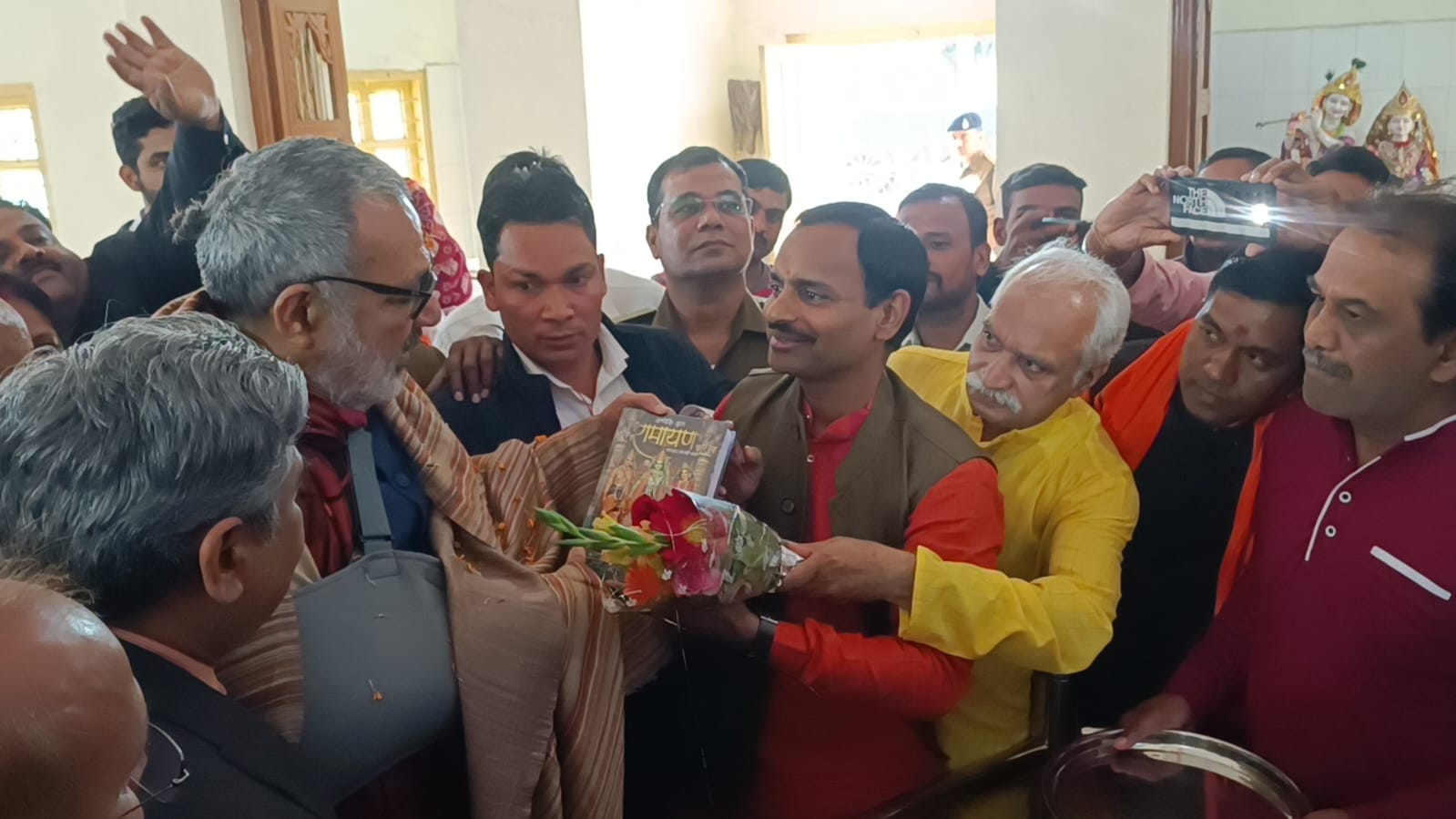 बालको सेवा समाज के अध्यक्ष हितानंद ने गिरिराज सिंह को रामायण भेंट की