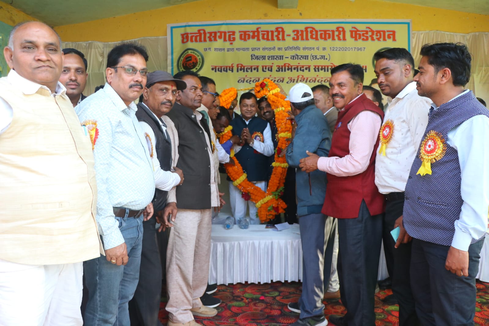 कोरबा (ट्रैक सिटी) छत्तीसगढ़ कर्मचारी अधिकारी फेडरेशन जिला कोरबा के आयोजकतत्व में नव वर्ष मिलन एवं अभिनंदन समारोह मा. शा. अंधरी कछार कोरबा प्रांगण मे आयोजित की गई थी, समारोह के मुख्य अतिथि छत्तीसगढ़ शासन के कैबिनेट मंत्री लखन लाल देवांगन एवं अध्यक्षता छ ग कर्मचारी अधिकारी फेडरेशन के प्रांतीय संयोजक माननीय कमल वर्मा रहे। अतिथियों का स्वागत कर्मचारियों अधिकारियों द्वारा बैंड बाजा के साथ स्वागत बंदन माध्यमिक शाला अंधरी कछार के छात्र-छात्राओं द्वारा स्वागत लोक नृत्य की रंगारंग प्रस्तुति तथा शिक्षक सत्यनारायण मनहर एवं साथियों द्वारा लोक संगीत के माध्यम से की गई। कैबिनेट मंत्री लखनलाल देवांगन द्वारा अपने उद्बोधन में कहा कि कर्मचारी अधिकारी शासन के जन हितैसी योजनाओं के क्रियान्वयन के प्रमुख कड़ी होते हैँ इनकी विधिक मांगों पर शासन गंभीरता से काम करेगी, उन्होंने कहा कि अभी कुछ दिनों तक ब्यस्तता है किन्तु आगे कर्मचारी अधिकारियों के साथ बैठकर समस्याओं का समाधान हेतु पहल की जाएगी। छत्तीसगढ़ कर्मचारी अधिकारी फेडरेशन के जिला संयोजक के. आर डहरिया द्वारा अपने स्वागत भाषण में सभी अतिथियों का स्वागत करते हुए जिले के कर्मचारी अधिकारी हितों से संबंधित मांग रखा साथ ही छत्तीसगढ़ कर्मचारी अधिकारी फेडरेशन के बैठकों एवं कार्यलयीन उपयोग हेतु अंधरी कछार प्रांगण में जिर्ण शीर्ण अवस्था में पड़ी स्कूल शिक्षा विभाग के शासकीय भवन को कार्यलयीन उपयोग हेतु मांग की गई जिस पर माननीय मंत्री द्वारा तत्काल सहमति प्रकट करते हुए भवन की जिर्णोद्धार एवं बैठकें हेतु आवश्यक सुविधाओं उपलब्ध कराने पहल करने की बात कही।