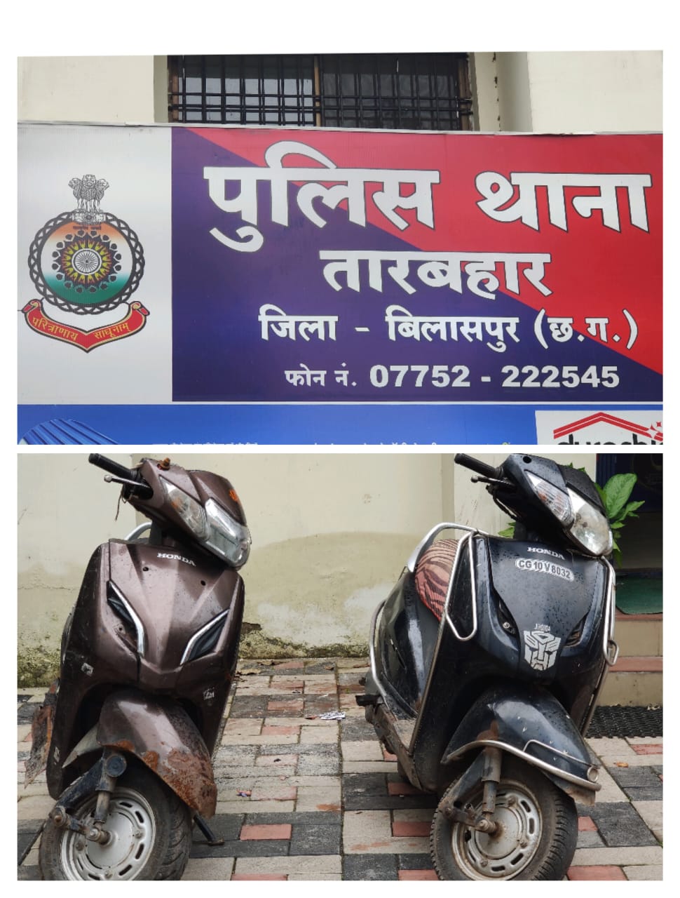 बिलासपुर (ट्रैक सिटी) दिनांक 08.08.2024 को थाना तारबाहर को मुखबीर से सूचना प्राप्त हुआ कि एक बालक चोरी कि एक्टिवा मे घुम रहा है उक्त सूचना पर तत्काल टीम बनाकर उक्त सूचना पर थाना तारबाहर पुलिस स्टाफ के मौके पर घेराबंदी कर एक बालक को चोरी की एक्टिवा सहित पकडा गया। उसके घर कि तलाशी लेने पर एक और चोरी कि एक्टिवा मिला। जिससे कडाई से पूछताछ करने पर दिनांक 12.10.2022 को आकाश कोचिंग सेंटर के बाहर सीएमडी कालेज के पास से एक्टिवा क्रमांक सीजी 10 ए पी 9829 को चोरी करना एवं दिनांक 28.07.2024 को अग्रसेन चैक दिल्ली बिरयानी सेंटर के पास एक्टिवा क्रमांक सीजी 10 वी 8032 को चोरी करना स्वीकार किया है। विधी से संघर्षरत् बालक के कब्जे से दो नग एक्टिवा कीमती 60000/ रूपये जप्त कर उक्त बालक को किशोर न्याय बोर्ड में पेश कर बाल संप्रेषण गृह बिलासपुर भेजा गया है।