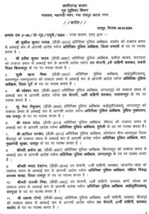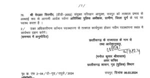 रायपुर/कोरबा, ट्रैक सिटी। छत्तीसगढ़ शासन गृह (पुलिस) विभाग के द्वारा अतिरिक्त पुलिस अधीक्षक स्तर के कुल 76 अधिकारियों की पदस्थापना में फेरबदल किया गया है। इसमें कोरबा जिले में पदस्थ एएसपी अभिषेक वर्मा को अतिरिक्त पुलिस अधीक्षक ऑपरेशन सुकमा के पद पर स्थानांतरित किया गया है। उनके स्थान पर यूबीएस चौहान कोरबा के नए अतिरिक्त पुलिस अधीक्षक होंगे।