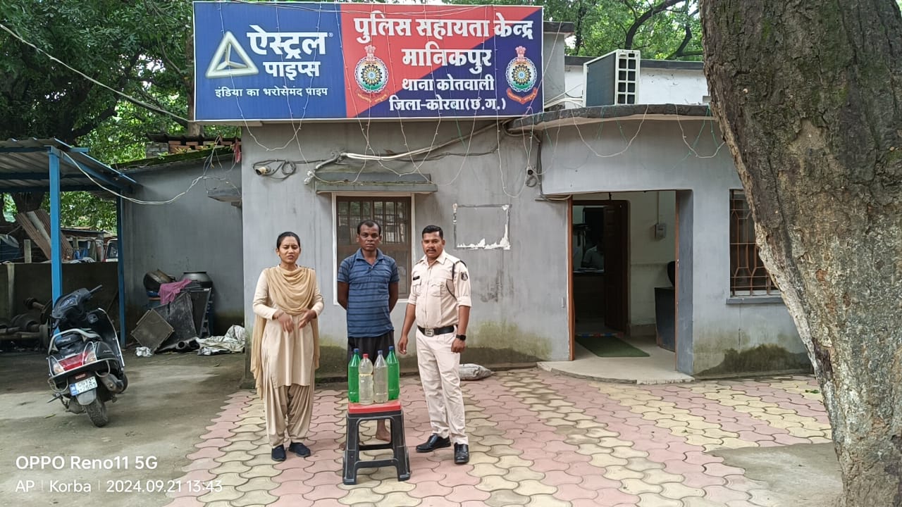 कोरबा (ट्रैक सिटी)/ मामले का संक्षिप्त विवरण इस प्रकार है कि पुलिस अधीक्षक कोरबा सिद्धार्थ तिवारी (भापुसे), अतिरिक्त पुलिस अधीक्षक यू०बी०एस० चौहान (रा०पु०से०) एवं नगर पुलिस अधोक्षक कोरबा श्री भूषण एक्का (रा०पु० से०) के दौरान कानून व्यवस्था मजबूत करते हुए अवैध शराब ब्रिकी करने वाले एवं असामाजिक तत्त्वों के विरूद्ध प्रभावी वैधानिक कार्यवाही करने हेतु जिले के समस्त पुलिस अधिकारीयो को निर्देशित किया गया है। उक्त निर्देश के पालन में क्षेत्र में मुखबीर को सक्रिय किया गया, मुखबीर से प्राप्त सूचना के आधार पर मानिकपुर कदमहाखार रमेश कुमार एक्का पिता जीवन लाल एक्का उम्र 37 वर्ष सा० कदमहाखार मानिकपुर चौकी मानिकपुर थाना कोतवाली जिला कोरबा के पास से 6.5 लीटर कच्ची महुआ शराब व बिक्री रकम 200 रूपये को जप्त किया गया है। आरोपी के विरूद्ध धारा 34 (2) आबकारी एक्ट के अंतर्गत कार्यवाही की जाकर आरोपी को गिरफ्तार किया जाकर न्यायिक अभिरक्षा में भेजा गया है।