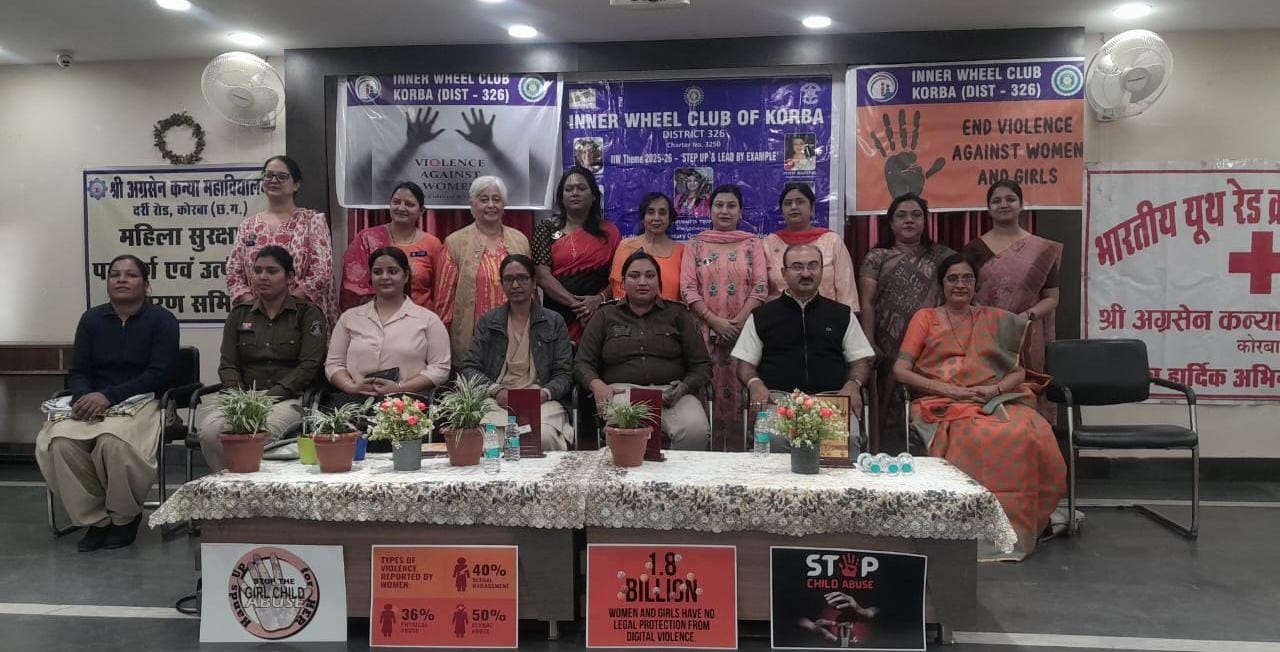 कोरबा (ट्रैक सिटी)/ इनरव्हील क्लब कोरबा द्वारा “Orange the World – Stop Violence Against Women & Girls” अभियान के अंतर्गत महिलाओं एवं बालिकाओं की सुरक्षा, आत्मविश्वास तथा मानसिक सशक्तिकरण पर आधारित एक महत्वपूर्ण जागरूकता संगोष्ठी का आयोजन किया गया। कार्यक्रम का मुख्य उद्देश्य समाज में महिला सुरक्षा के प्रति जागरूकता बढ़ाना और आत्मविश्वास को मजबूत करना था।