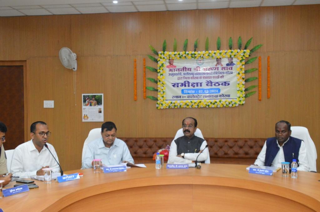 कोरबा (ट्रैक सिटी)/ कोरबा प्रदेश की ऊर्जा धानी है। यहां कार्य करने की असीम संभावनाएं है, संसाधनों की कोई कमी नही है, बहुमूल्य खनिज प्रचुर मात्रा में उपलब्ध है। जिले का नेतृत्व करने वाली ऊर्जावान टीम आपके पास है। सभी अधिकारी नई ऊर्जा व उत्साह के साथ काम करें। सभी अधिकारी अपने कर्तव्यों का जिम्मेदारी पूर्वक निर्वहन करें एवं शासन की कल्याणकारी योजनाओं का लाभ आम नागरिकों तक प्राथमिकता से पहुँचाएं। उक्त बातें जिले के प्रथम प्रवास पर आए उपमुख्यमंत्री छत्तीसगढ़ शासन एवं प्रभारी मंत्री कोरबा अरुण साव द्वारा कलेक्ट्रेट सभाकक्ष में आयोजित विकास कार्याे की समीक्षा बैठक में कही गयी। समीक्षा बैठक में छत्तीसगढ़ शासन के उद्योग, व्यापार एवं श्रम मंत्री लखन लाल देवांगन, विधायक कटघोरा प्रेमचंद पटेल, महापौर राजकिशोर प्रसाद, जिला पंचायत अध्यक्ष शिवकला छत्रपाल सिंह कंवर, कलेक्टर अजीत वसंत, पुलिस अधीक्षक सिद्धार्थ तिवारी, डीएफओ अरविंद पीएम, कुमार निशांत, सीईओ जिला पंचायत संबित मिश्रा, नगर निगम आयुक्त प्रतिष्ठा ममगाई, अपर कलेक्टर सहित अन्य विभागीय अधिकारी उपस्थित थे।