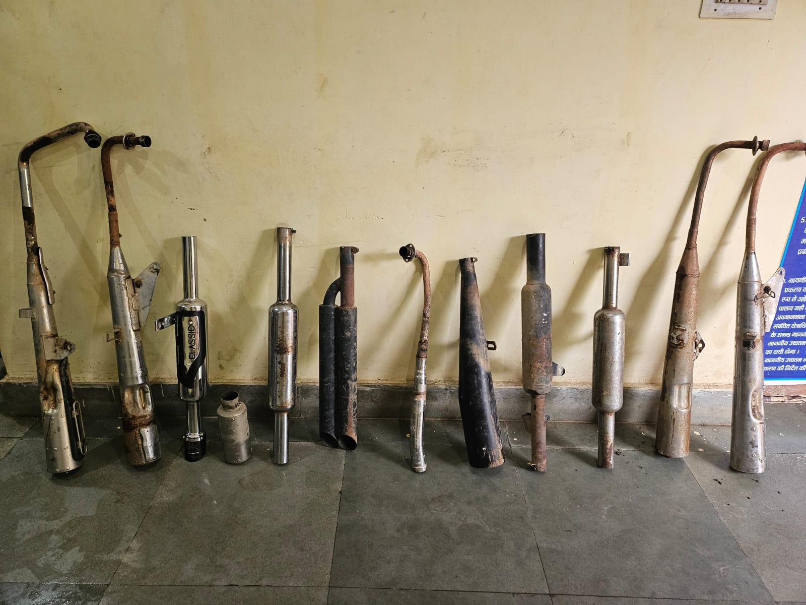 एक दिन में कोरबा पुलिस के द्वारा कुल 49 साईलेंसरों एवं प्रेशर हॉर्न को जप्त किया गया।