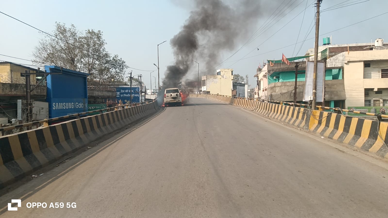 ओव्हरब्रिज पर स्कार्पियो मे लगी आग।