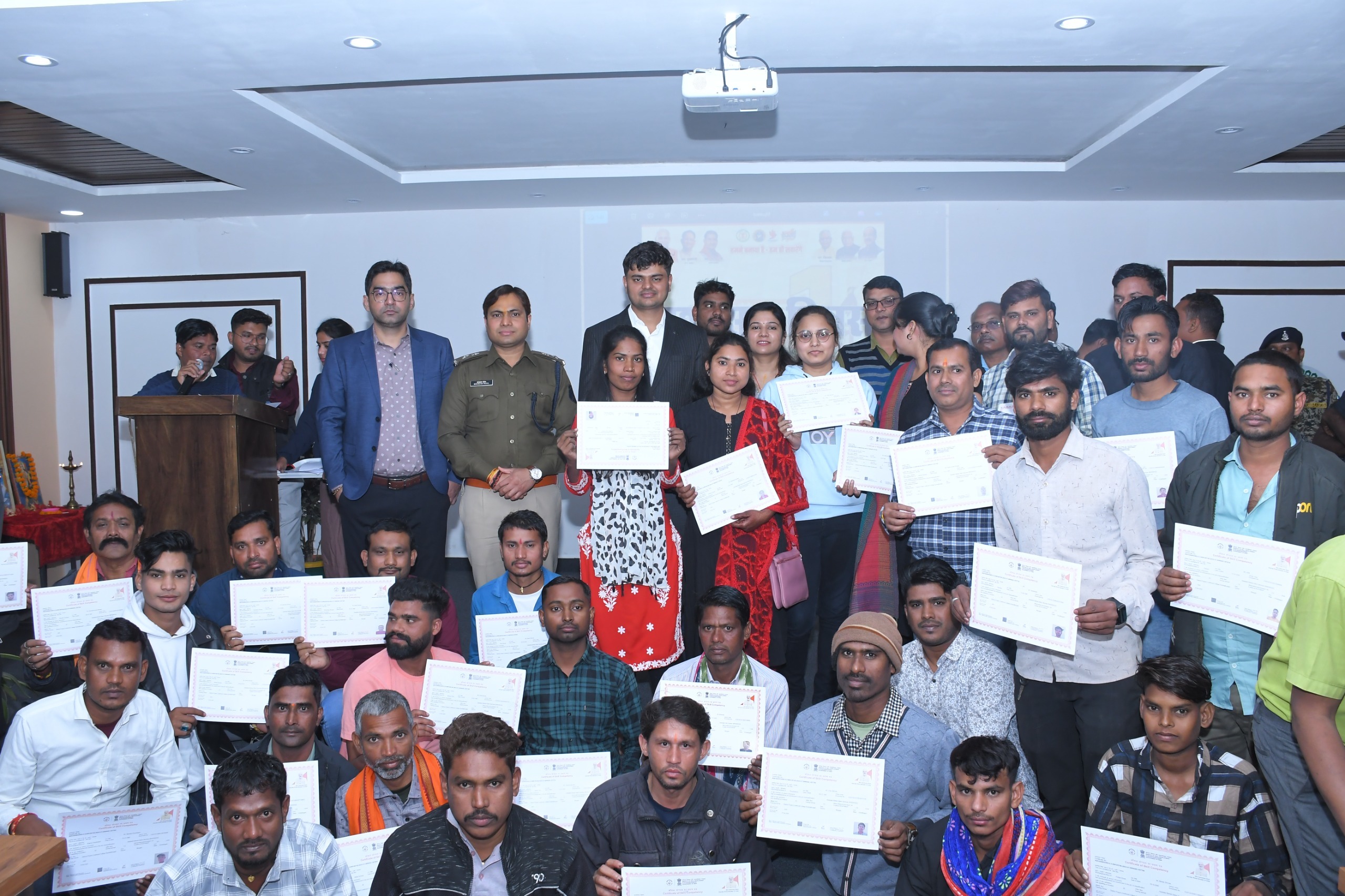 ट्रैक सिटी/ मुख्यमंत्री विष्णुदेव साय सरकार में सुशासन के 01 वर्ष पूरा होने पर जिला लाइवलीहुड कॉलेज जमकोर में दिव्यांगजन सम्मान समारोह एवं कौशल प्रशिक्षण प्रमाण पत्र वितरण कार्यक्रम का आयोजन किया गया। इस अवसर पर कलेक्टर राहुल देव और पुलिस अधीक्षक भोजराम पटेल ने प्रधानमंत्री कौशल विकास योजना, पीएम विश्वकर्मा योजना व आजीविका मिशन अंतर्गत 150 से अधिक हितग्राहियों को प्रमाण पत्र वितरण किया। इसके साथ ही खेल सहित विभिन्न क्षेत्र में उत्कृष्ट प्रदर्शन करने वाले 35 से अधिक दिव्यांगजनों को शील्ड प्रदान कर सम्मानित किया और बधाई दी। कलेक्टर-एसपी ने युवाओं द्वारा बनाई गई रंगोली व पेंटिंग का भी अवलोकन किया और सराहना की। इस दौरान प्रतिभागियों द्वारा रंगारंग सांस्कृतिक कार्यक्रमों की मनमोहक प्रस्तुति दी गई।