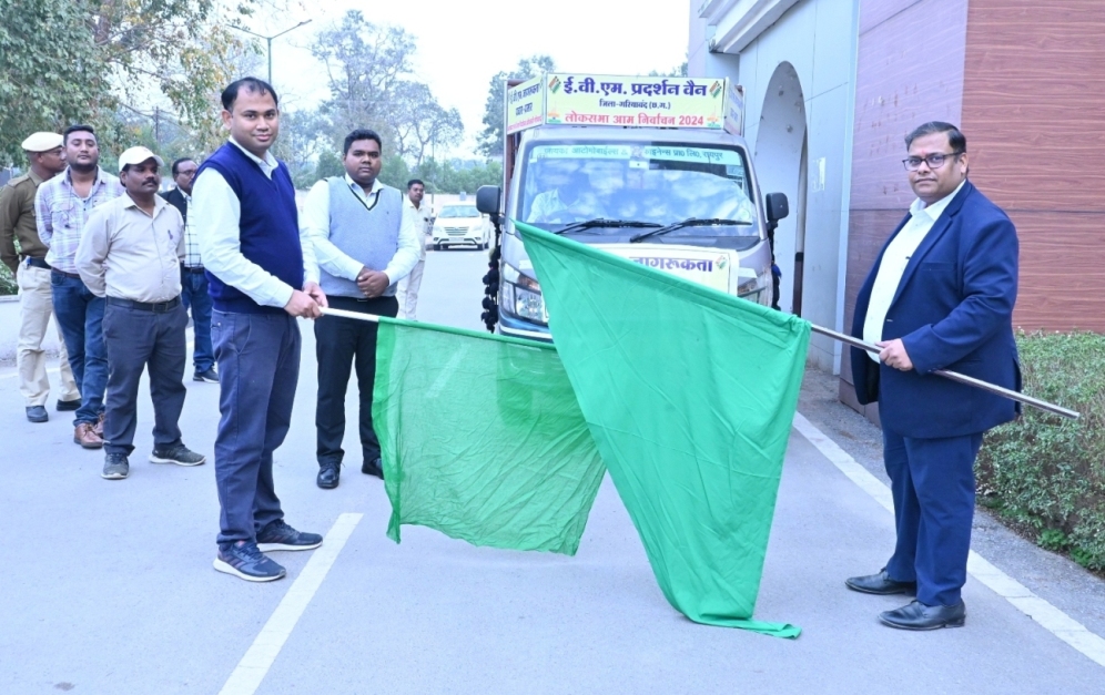 गरियाबंद (ट्रैक सिटी) कलेक्टर एवं जिला निर्वाचन अधिकारी दीपक कुमार अग्रवाल ने आज कलेक्टोरेट परिसर से ईवीएम प्रदर्शन वैन को हरी झंडी दिखाकर रवाना किया। उन्होंने कहा कि यह वैन आगामी लोकसभा निर्वाचन के लिए मतदाताओं को जागरूक करने के लिए ईवीएम एवं वीवीपीएटी मशीन के साथ जिले के विभिन्न गांवों में भ्रमण कर मतदाताओं को वोटिंग के लिए प्रोत्साहित करेगी तथा ई.वी.एम. प्रदर्शन वैन के माध्यम से मतदाताओं को ईवीएम एवं वीवीपैट मशीन की जानकारी जिले के सभी ग्राम पंचायतों, मतदान केन्द्रों, हाट-बाजार, विद्यालय एवं महाविद्यालय में दी जाएगी।