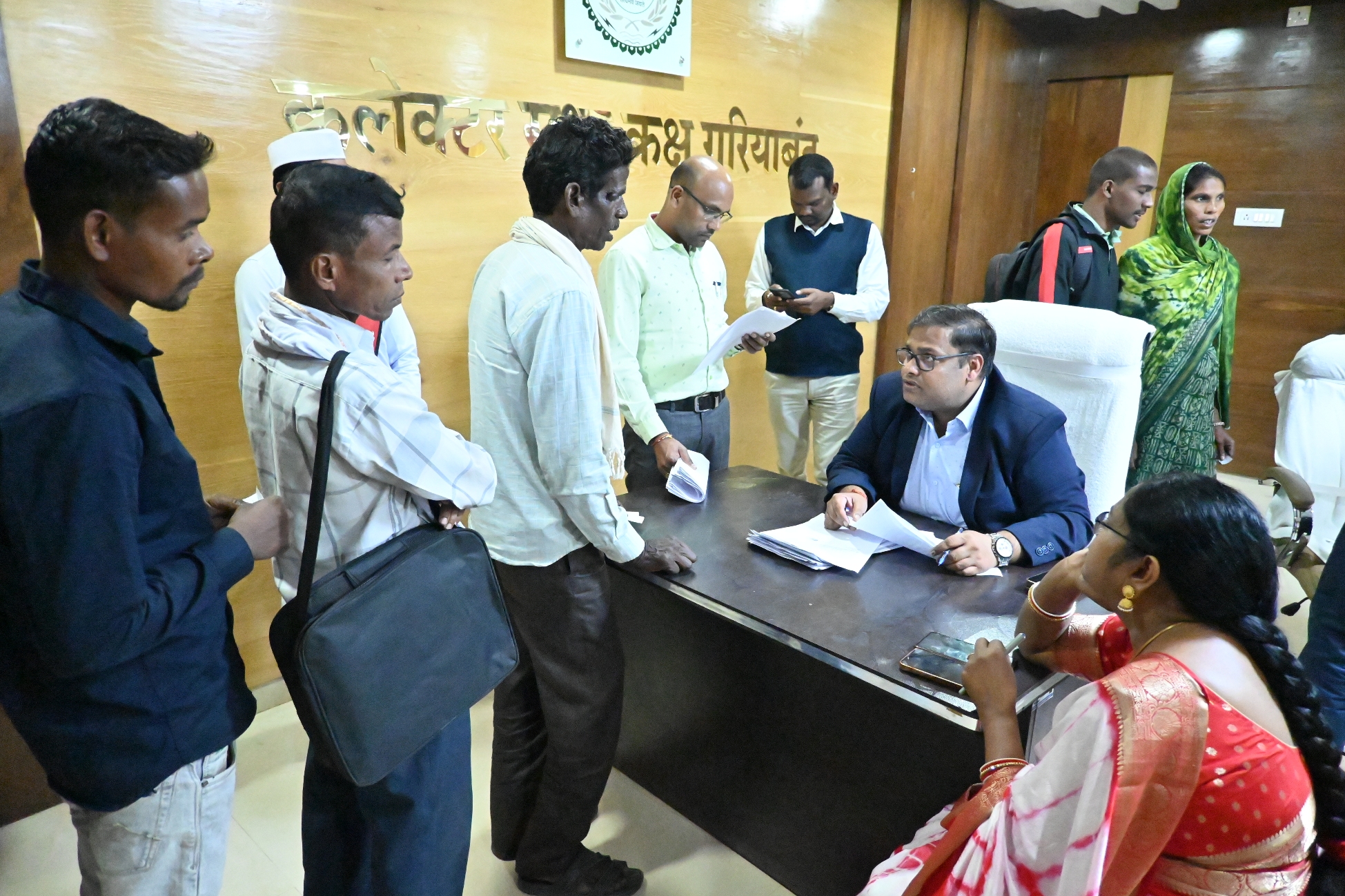 गरियाबंद (ट्रैक सिटी) जनचौपाल में कलेक्टर दीपक कुमार अग्रवाल ने जिले के दूर दराज से आये नागरिकों, ग्रामीणजनों की मांग, समस्याओं एवं शिकायतों को सुनकर आवेदनों का त्वरित निराकरण करने के निर्देश विभागीय अधिकारियों को दिये। कलेक्टर श्री अग्रवाल ने जनचौपाल में आये ग्रामीणजनों को स्थानीय बोली के माध्यम से उनके आवेदन प्राप्त कर उनके नियमानुसार निराकरण करने के बारे में उन्हें अवगत कराया। आज के जनचौपाल में 82 आवेदन प्राप्त हुए। इस दौरान नागरिकों ने बारी-बारी से अपनी समस्याओं, मांगों एवं शिकायतों से संबंधित आवेदन प्रस्तुत किये।