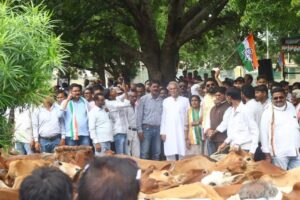 रायपुर। कांग्रेस ने प्रदेश में आवारा पशुओं की समस्या की तरफ राज्य सरकार का ध्यान आकृष्ट करने गौ सत्याग्रह किया। आज प्रदेश के सभी जिलों और ब्लाकों में कांग्रेसजनों ने आवारा पशुओं को हंकाल कर सरकारी कार्यालयों में छोड़ा।