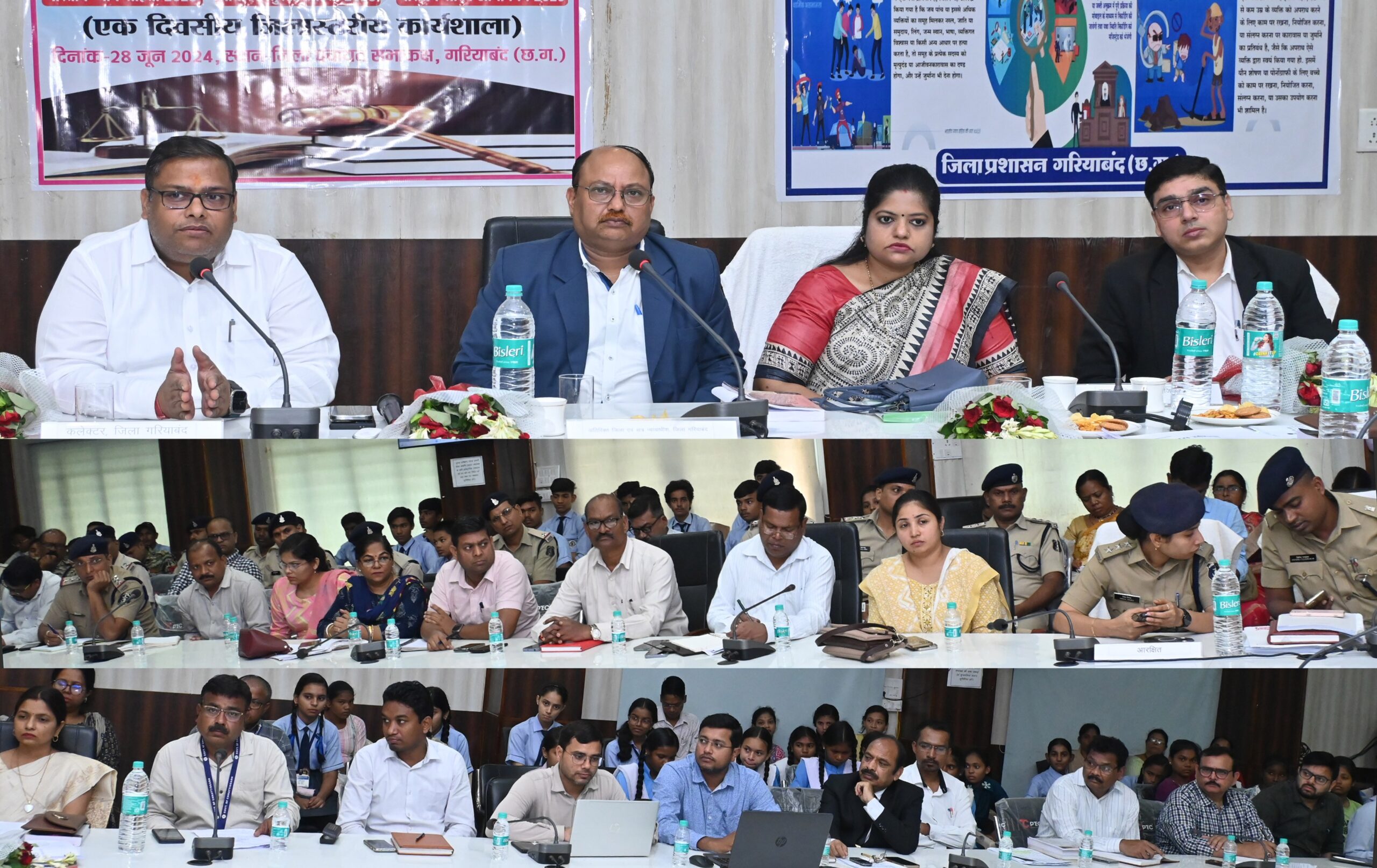 गरियाबंद/ एक जुलाई से देशभर में लागू होने वाले तीन नये कानूनों के संबंध में जानकारी देने आज जिला पंचायत के सभाकक्ष में एक दिवसीय कार्यशाला आयोजित किया गया। जिसमें अतिरिक्त जिला एवं सत्र न्यायाधीश यशवंत वासनिकर, अतिरिक्त जिला एवं सत्र न्यायाधीश श्रीमती तजेश्वरी देवांगन एवं न्यायिक मजिस्ट्रेट प्रथम श्रेणी श्री प्रशांत देवांगन ने आईपीसी 1860, सीआरसी 1973 एवं एविडेंस एक्ट 1872 में किये गये संशोधन भारतीय न्याय संहिता, भारतीय नागरिक सुरक्षा संहिता एवं भारतीय सजा अधिनियम के बारे में जानकारी दी गई। इस अवसर पर कलेक्टर दीपक कुमार अग्रवाल, अतिरिक्त पुलिस अधीक्षक जितेन्द्र चन्द्राकर, संयुक्त कलेक्टर पंकज डाहिरे सहित जिला अधिकारी, पुलिस विभाग के अधिकारी, समस्त एसडीएम, महिला एवं बाल विकास विभाग के कर्मचारी, स्कूल एवं महाविद्यालयीन छात्र-छात्राएं सहित अन्य नागरिक उपस्थित थे।