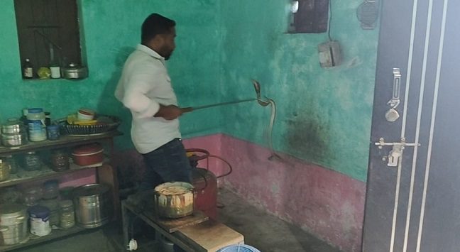 कोरबा (ट्रैक सिटी)/ कोरबा जिले के सिंगापुर क्षेत्र के मंगलवार दोपहर एक घर के किचन में उस समय अफरा-तफरी मच गई जब सिलेंडर के पीछे एक फन फैलाए हुए नाग को बैठा देखा गया,आवाज सुनते ही घर की महिला (अर्चना कंवर)घबरा गई और कुछ देर के लिए हक्के-बक्के रह गई, फन वाला सांप देखकर यह समझते देर नहीं लगी कि यह बेहद जहरीला नाग है, महिला ने तुरंत पड़ोसियों को बुलाया, लेकिन किसी में भी इतने खतरनाक सांप को निकालने की हिम्मत नहीं हुई, इसके बाद वाइल्डलाइफ रेस्क्यू टीम (नोवा नेचर) के जितेंद्र सारथी को सूचना दी गई, सूचना मिलते ही जितेंद्र सारथी अपने टीम के साथ मौके पर पहुंचे और पूरी सावधानी व कुशलता के साथ नाग का सुरक्षित रेस्क्यू किया,उन्होंने सांप को विशेष उपकरणों की मदद से पकड़कर थैले में सुरक्षित रखा, जिससे घर के सभी सदस्यों ने राहत की सांस ली, रेस्क्यू के बाद नाग को उसके प्राकृतिक आवास में सुरक्षित छोड़ दिया गया।