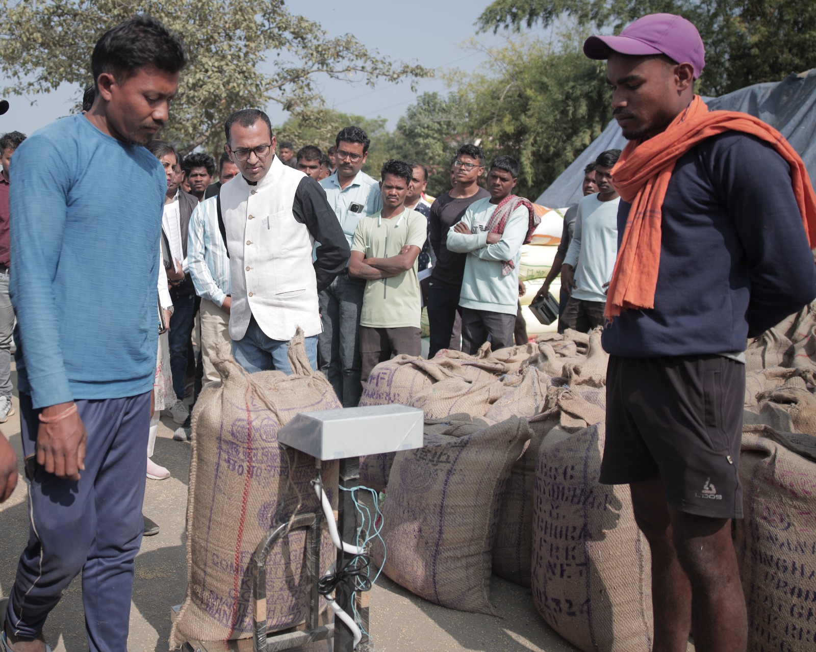 कोरबा (ट्रैक सिटी)/ कलेक्टर अजीत वसंत ने आज विकासखंड पाली के आदिम जाति सहकारी मर्यादित धान खरीदी केन्द्र पोड़ी(लाफा) व निरधी का निरीक्षण किया। कलेक्टर ने उर्पाजन केन्द्र में पंजीकृत किसानों की संख्या, जारी टोकन अब तक हुए धान खरीदी, राशि भुगतान एवं केंद्र में उपलब्ध बारदानों के सम्बंध में प्रबंधक से जानकारी ली। उन्होंने केंद्र में धान भंडारण, स्टैकिंग व्यवस्था का भी अवलोकन करते हुए नए-पुराने बारदाना की उपलब्धता, बारदाना की गुणवत्ता सहित नमी परीक्षण यंत्र, इलेक्ट्रानिक तौल मशीन, चौकीदार की व्यवस्था, सतत निगरानी हेतु सीसीटीवी की व्यवस्था का जायजा लिया। उन्होंने किसानों द्वारा विक्रय हेतु लाए धान की नमी का भी अपने समक्ष जांच करवाई और बोरी में भरे धान का इलेक्ट्रॉनिक तौल मशीन में माप करवाकर वजन का सत्यापन कराया।