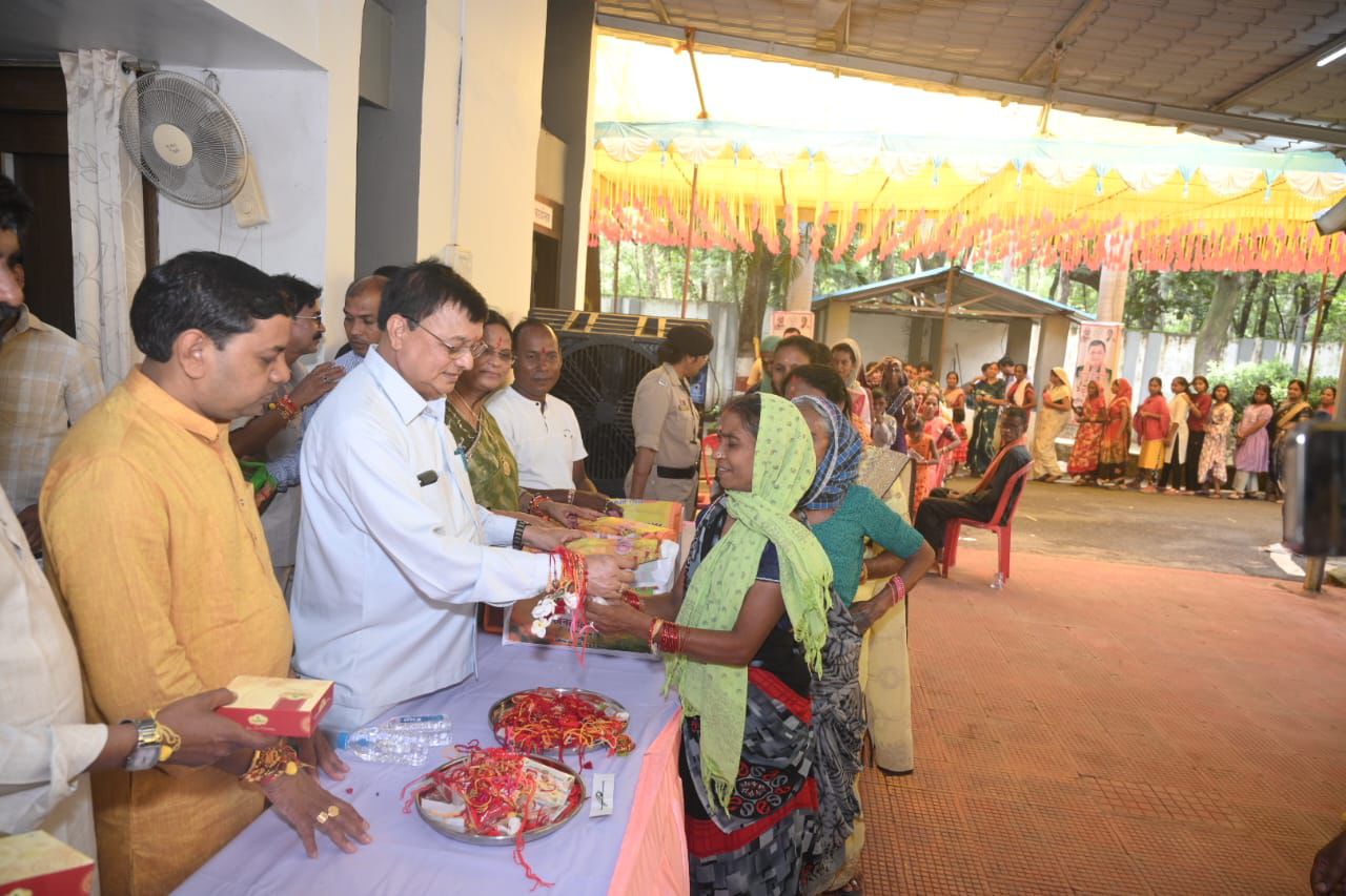 मंत्री देवांगन हर बहन को मुस्कुराकर प्रणाम कर रहे थे, बच्चों को दुलार रहे थे और बुजुर्ग माताओं के पैर छूकर आशीर्वाद ले रहे थे। मंत्री की कलाई पर सैकड़ों रंग-बिरंगी राखियाँ लिपट चुकी थीं,हर धागे में आशीर्वाद, हर रंग में विश्वास और हर मुस्कान में भाई-बहन के अटूट बंधन दिखाई पड़ रहा था।
