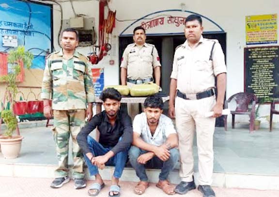 बस के ऊपरी बर्थ पर बैठे दो युवकों नीतीश चंद पिता प्रकाश चंद (उम्र 19 वर्ष, निवासी नदीहार, थाना राजगढ़, जिला मिर्जापुर, उत्तर प्रदेश) और दीपक शर्मा पिता जयदेव शर्मा (उम्र 24 वर्ष, निवासी झापड़ी, थाना सुकृत, जिला सोनभद्र, उत्तर प्रदेश) के पास रखे दो बैगों की जांच में प्रत्येक के पास 2.100 किलो ग्राम गांजा बरामद हुआ। कुल 4.200 किलो गांजा जब्त कर अपराध क्रमांक 188/2025 धारा 20(बी) एनडीपीएस एक्ट के तहत मामला दर्ज किया गया।