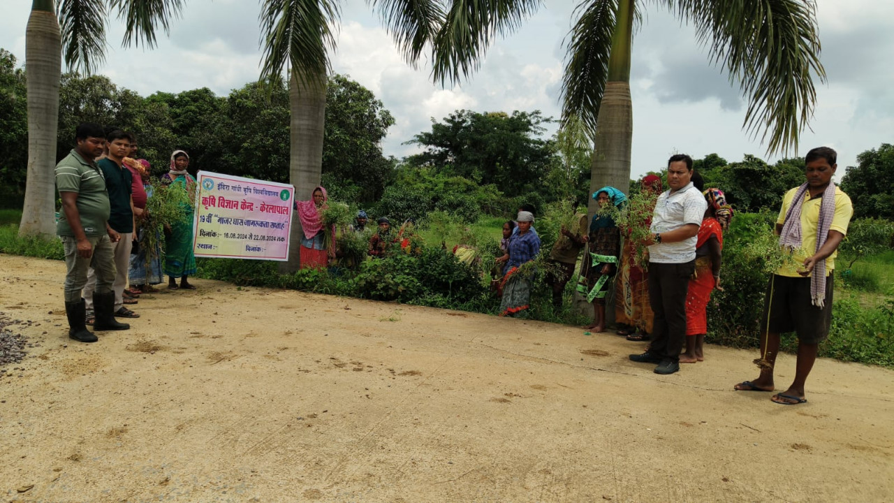 नारायणपुर (ट्रैक सिटी)/ कृषि विज्ञान केन्द्र केरलापाल, नारायणपुर द्वारा गाजरघास उन्मुलन जागरूकता कार्यक्रम का आयोजन नारायणपुर के विभिन्न ग्रामों में किया जा राहा है, इस कार्यक्रम के मुख्य उद्देश्य यह है कि आम जनता एवं किसानो को गाजरघास के हानी कारक प्रभाव एवं उसके नियत्रण के बारे में जागरूक करना, कृषि विज्ञान केन्द्र के अधिकारीयों के द्वारा बताया गया कि गाजर घास जिसे आमतौर पर कांग्रेस घास, चटक चादनी के नाम से भी जाना जाता है। यह एक विदेशी घास है, यह विदेशी खरपतवार अधिकतर रोड के किनारे, घर के बाडी में बंजर भूमि सहित कई स्थानों में उगता है, जो कि मनुष्य के स्वास्थय के लिये हानिकारक है। यह त्वचा एवं श्वसन तत्र को जबरदस्त हानी पहुंचाता है। इस घास से एलर्जी इतनी हानी कारक होती है कि मनुष्य घातक रूप से अस्थमा से ग्रस्त हो सकती है। गाजर घास मनुष्य के साथ-साथ पशुओं के लिये भी हानी कारक है। इसको नष्ट करने का उपाय यह है कि इस खरपतवार को फूलने से पहले ही उखाड़ कर जला देना चाहिए ताकि इसके बीज न बन पाए व न ही फैल पाए। जैविक उपाय जिसमे खरपतवार को छोटे अवस्था में 15 प्रतिशत नमक का घोल बना कर छिड़काव करना एवं अधिक मात्रा में फैल जाने पर खाली खेतों में मेढ़ पर ग्लाइफोसेट 41 फिसदी दवा का छिड़काव करने से इसका नियत्रंण किया जा सकता है। इस कार्यक्रम में कृषि विज्ञान केन्द्र के अधिकारी एवं कर्मचारी के साथ किसान भाग ले रहे हैं।
