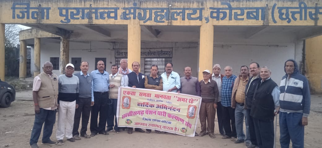 कोरबा –छ.ग.पेंशनधारी कल्याण संघ जिला शाखा कोरबा की बैठक 8 दिसंबर को संध्या 6:00 बजे घंटाघर ओपन थियेटर जिला पुरातत्व कार्यालय मे रखी गई, बैठक में संघ की सदस्यता एवम्ं दिनांक 17 दिसंबर 24 को बीजापुर मे मनाये जा रहे पेंशनर दिवस समारोह में सम्मिलित होने की चर्चा की गई, केन्द्र द्वारा दी गई 3% मंहगाई राहत भत्ता राज्य मे लागू करने की शासन से मांग की गई, बैठक मे अध्यक्ष- आर के शर्मा, प्रवक्ता प्यारेलाल चौधरी , जे पी श्रीवास्तव, आर के पाण्डेय, नन्दराम बाविस्टाले, एस के द्विवेदी, एस एस तोमर, ए पी शुक्ला, बसंत कुमार तिवारी, एस के विश्वास, घुरसाय निर्मलकर, दीपचंद श्रीवास, पी एल चौहान, आदि उपस्थित थे,