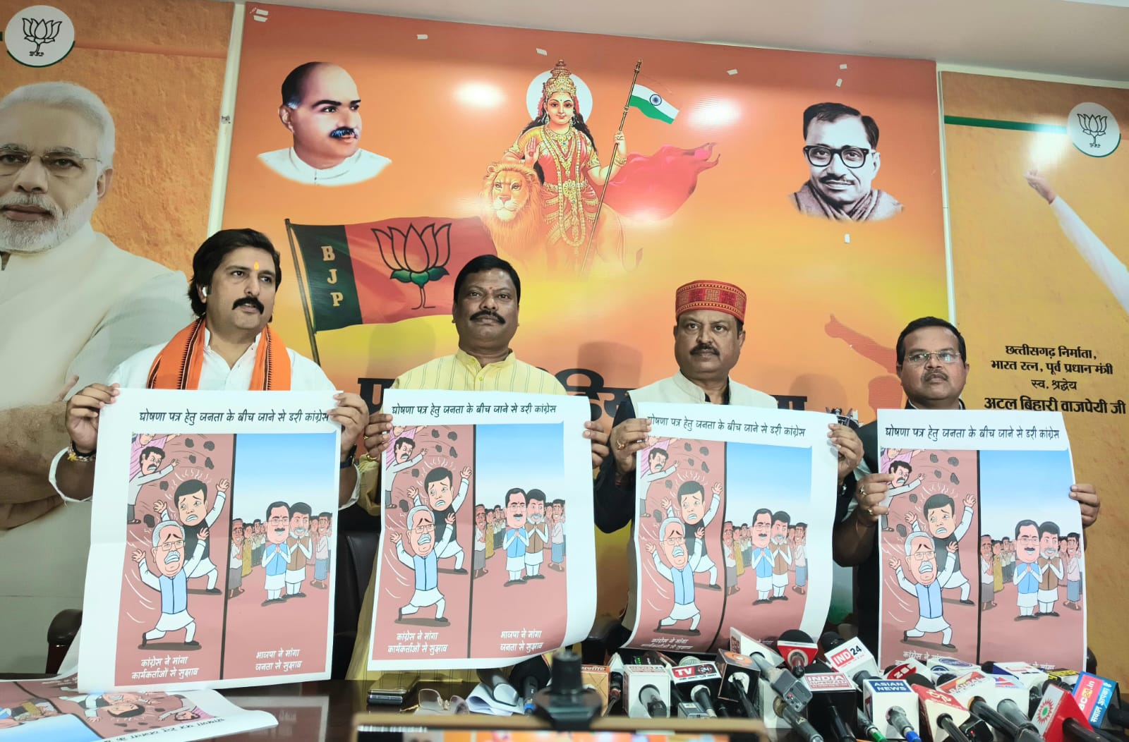 भाजपा प्रदेश महामंत्री संजय श्रीवास्तव ने कहा कि कांग्रेस पार्टी और उसके प्रदेश अध्यक्ष दीपक बैज जनता से भाग रही है, जनता के बीच जाने से डर रही है। उन्होंने कहा कि अखबारों में प्रकाशित खबरों के अनुसार कांग्रेस का घोषणा पत्र तैयार हो गया है लेकिन उसमें जनता की सोच, जनता के मांग, जनता का संकल्प नहीं है आखिर कांग्रेस ने ऐसा क्यों किया? इसका जवाब सीधा सा है कि कांग्रेस किस मुंह से जनता के पास जाती।