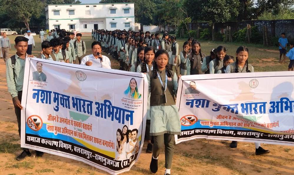 बलरामपुर (ट्रैक सिटी)/ कलेक्टर रिमिजियुस एक्का के निर्देशन में समाज कल्याण विभाग द्वारा विकासखण्ड बलरामपुर के हायर सेकेंडरी स्कूल जरहाडीह में नशा मुक्त भारत अभियान के तहत जागरूकता कार्यक्रम का आयोजन किया गया। कार्यक्रम का उद्देश्य छात्रों और आमजनों को नशे दूर रहने तथा उसके दुष्परिणामों के प्रति जागरूक करना था। कार्यक्रम में विभाग के अधिकारियों द्वारा उपस्थित छात्र-छात्राओं को नशे से होने वाले दुष्परिणाम के संबंध में विस्तृत जानकारी प्रदान की गई। साथ ही नशे से बचने और अपने आस-पास के लोगों को भी नशे के प्रति जागरूक करने के लिए प्रेरित करने के लिए शपथ भी दिलाया गया। इस दौरान छात्र-छात्राओं ने रैली निकालकर आस-पास के ग्रामीणों को नशे से होने वाले दुष्परिणाम के बारे में भी बताया।