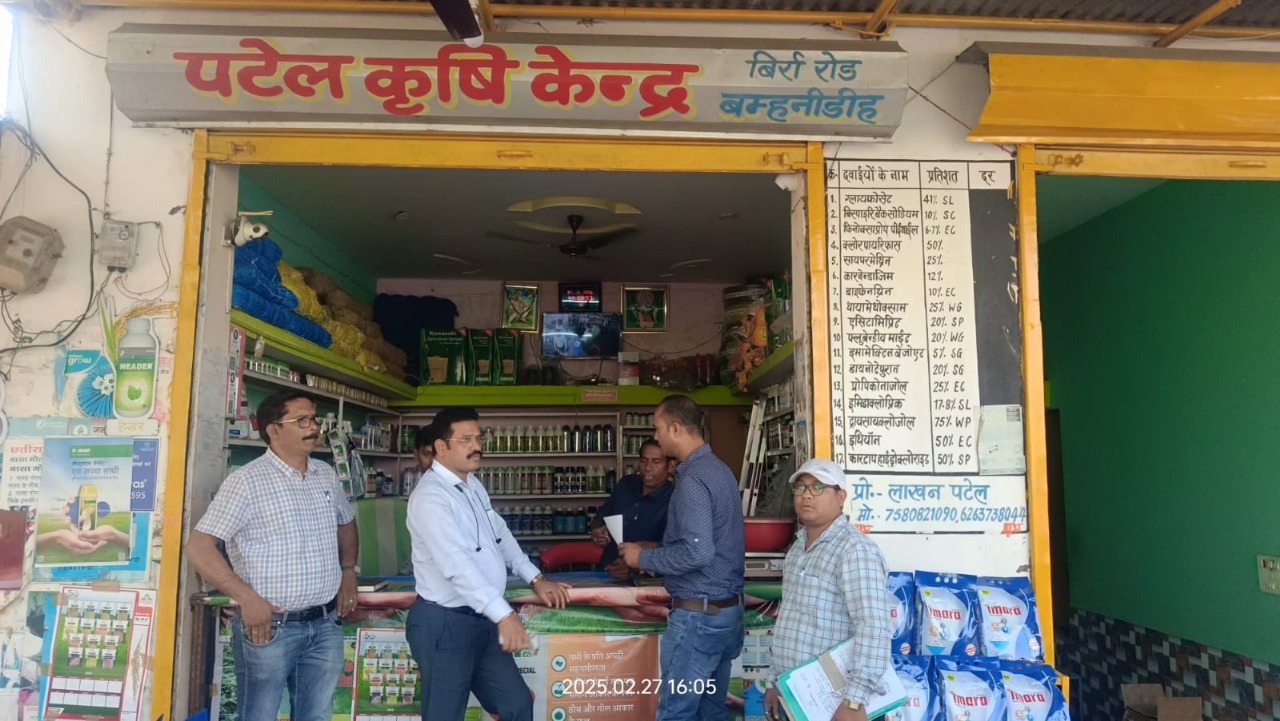 जांजगीर-चांपा/कोरबा (ट्रैक सिटी) कलेक्टर आकाश छिकारा के निर्देशन में जिला स्तरीय उर्वरक गुण नियंत्रण दल द्वारा जिले के कृषकों को सुगमता पूर्वक गुणवत्तायुक्त कृषि बीज, उर्वरक, कीटनाशक उपलब्ध कराने हेतु निरीक्षण दल द्वारा लगातार जिले में बीज, उर्वरक एवं कीटनाशक विक्रेताओं के प्रतिष्ठानों का सघन जांच किया जा रहा है।