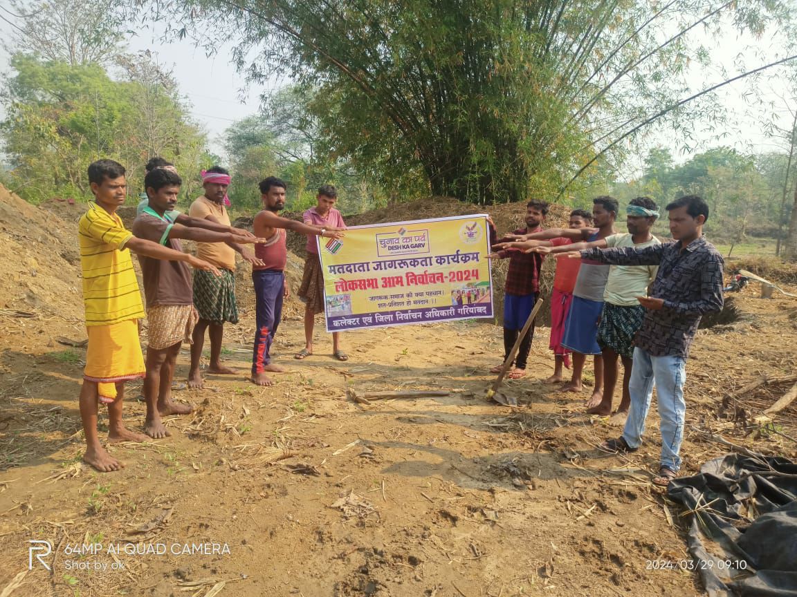 गरियाबंद/ कलेक्टर एवं जिला निर्वाचन अधिकारी दीपक कुमार अग्रवाल के निर्देश पर जिले में स्वीप कार्यक्रम अंतर्गत संकल्प गरियाबंद ’’चुनाव का पर्व – देश का गर्व ’’ के तहत जिले में लगातार मतदाता जागरूकता से संबंधित गतिविधियों का आयोजन किया जा रहा है। जिला पंचायत सीईओ श्रीमती रीता यादव के मार्गदर्शन में लोकसभा निर्वाचन 2024 में शत प्रतिशत मतदान करने के लिए जिले के मनरेगा श्रमिकों का कार्यस्थल पर मतदाता जागरूकता शपथ दिलाई गई। इस दौरान श्रमिकों ने मतदाता जागरूकता शपथ लेकर कहा कि हम स्वयं जागरूक रहकर मतदान करेंगे साथ ही अन्य लोगों को मतदान के लिए प्रेरित करेंगे। इस दौरान लोकसभा निर्वाचन 2024 में शत-प्रतिशत मतदान के लिए मतदाताओं को जागरूक करते हुए कहा गया कि वे अपने मताधिकार का प्रयोग कर लोकतंत्रात्मक प्रणाली में अपनी सहभागिता सुनिश्चित करने के लिए प्रेरित किया गया तथा उन्हें अपने परिवार एवं आसपास के लोगों को शत-प्रतिशत मतदान करने के लिए प्रोत्साहित करने कहा तथा बिना किसी भय व लोभ के निष्पक्ष मतदान करने की बात कही।