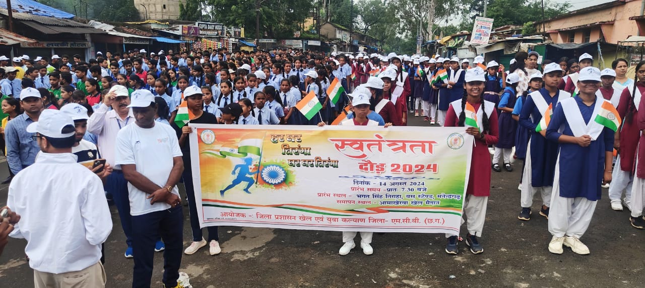 एमसीबी (ट्रैक सिटी)/ स्वतंत्रता दिवस के पूर्व दिवस पर जिला प्रशासन एवं खेल एवं युवा कल्याण विभाग द्वारा स्वतंत्रता दौड़ का आयोजन किया गया। जिला अध्यक्ष श्री अनिल केशरवानी व पुलिस अधीक्षक श्री चन्द्रमोहन सिंह ने देश के शहीद जवानों को याद कर दीप प्रज्वलित कर स्वतंत्रता दौड़ को हरी झण्डी दिखाकर रवाना किया। भगत सिंह तिराहा, बस स्टैण्ड से प्रारंभ होकर जिला स्तरीय ध्वजारोहण स्थल आमाखेरवा खेल मैदान मनेंद्रगढ़ में समाप्त हुई। इस अवसर पर अनिल केशरवानी ने अपने संबोधन में कहा कि स्वतंत्रता दिवस का यह राष्ट्रीय पर्व हमें याद दिलाता है कि हमारे पूर्वजों ने इस आजादी के लिए कितनी कुर्बानियां दी हैं। तिरंगा झंडा उनके बलिदान के प्रति कृतज्ञता और हमारी एकजुटता का प्रतीक है। हमारे पुरखों के लंबे संघर्ष के बाद हमें स्वतंत्रता मिली है, जो उन्होंने विरासत के रूप में हमें सौंपी है। उन्होंने स्कूली बच्चों से कहा देश के प्रति प्रेम एवं आपसी सौहार्द को बढ़ावा देना इस दौड़ का मुख्य उद्देश्य है इस मौके पर उन्होंने ने सभी प्रतिभागियों का उत्साहवर्धन किया और तिरंगा फहराना, स्वतंत्रता सेनानियों,वीर सपूतों की भावना का सम्मान करने, देश के विकास और प्रगति के लिए खुद को समर्पित करने समाज में शांति और सद्भावना बनाए रखने की शपथ दिलाई,पुलिस अधीक्षक चन्द्रमोहन सिंह नें अपने संबोधन में उन्होंने स्कूली बच्चों से कहा कि स्वतंत्रता दिवस के इस पर्व पर संकल्प करें कि स्वतंत्रता के मूल्यों को समझते हुए हम देश को आगे ले जाने में अपना सर्वश्रेष्ठ योगदान दें। इसके लिए जरूरी है आप सभी खूब मन लगाकर पढ़ें,और साथ में खेल के प्रति भी अपना रुझान मजबूत बनाएं। जिस भी क्षेत्र में करियर बनाना चाहते हैं उसमें पूरे लगन से मेहनत करें। आपके योगदानों से ही देश की पहचान बनेगी। इस अवसर पर अपर कलेक्टर अनिल कुमार सिदार ,संयुक्त कलेक्टर लिंगराज सिदार , मुख्य चिकित्सा अधिकारी डॉ सुरेश तिवारी, जिला शिक्षा अधिकारी अजय कुमार मिश्रा,राहुल सिंह पूर्व कोषाध्यक्ष , धर्मेंद्र पटवा पूर्व नगर पालिका अध्यक्ष, इमरान खान मुख्य नगर पालिका अधिकारी सहित जिला स्तरीय अधिकारी उपस्थित रहे। मंच संचालन खेल अधिकारी गोपाल सिंह ने किया। सभी ने शपथ ली कि तिरंगा फहराकर हमारे स्वतंत्रता सेनानियों और वीर सपूतों की भावना का सम्मान करेंगे तथा भारत के विकास और प्रगति के लिए स्वयं को समर्पित करेंगे।