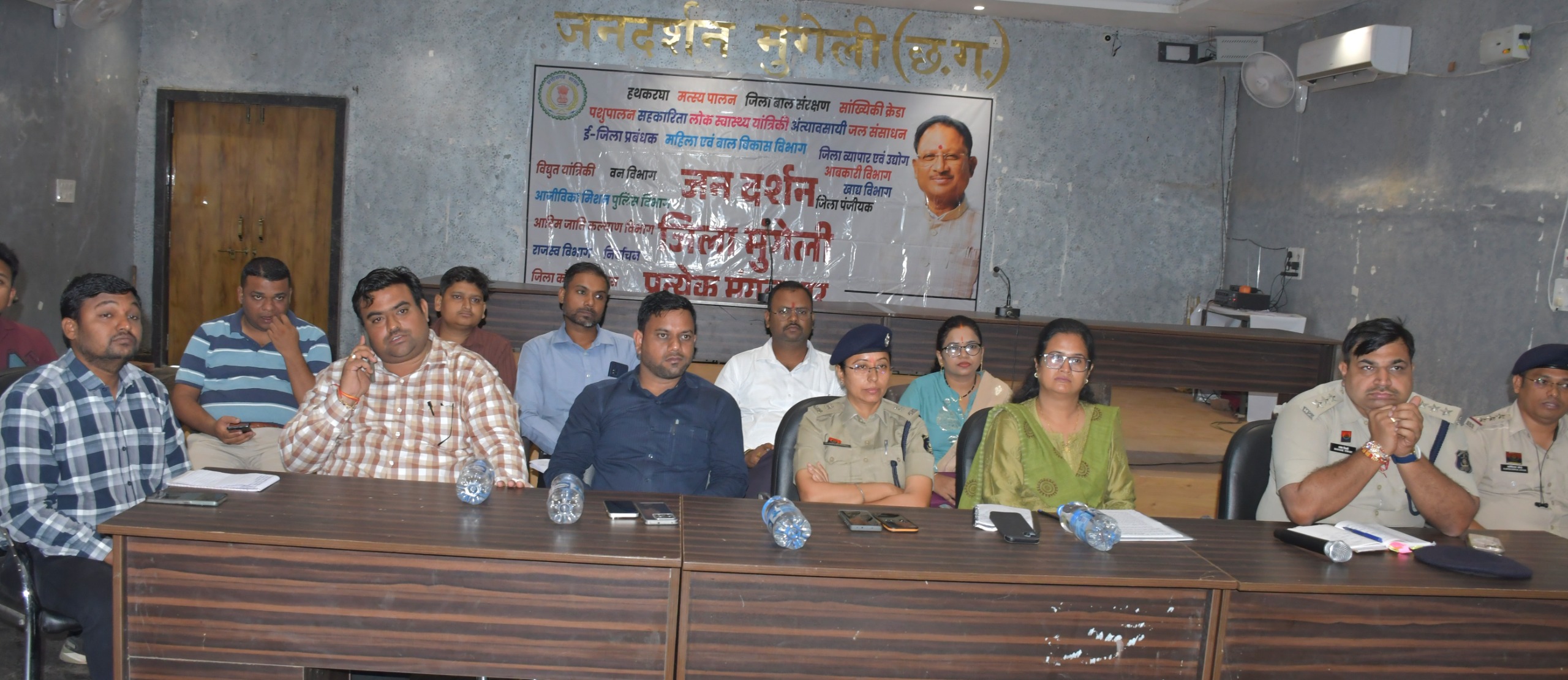 मुंगेली (ट्रैक सिटी) जिले में आगामी दिनों में होने वाले गणेश विसर्जन एवं ईद पर्व को शांति एवं सौहार्द्रपूर्ण माहौल में सम्पन्न कराने हेतु कलेक्टर कुन्दन कुमार के निर्देशानुसार जिला कलेक्टोरेट स्थित जनदर्शन कक्ष में जिला स्तरीय शांति समिति की बैठक आयोजित की गई। बैठक की अध्यक्षता अतिरिक्त कलेक्टर श्रीमती निष्ठा पांडेय तिवारी ने की। उन्होंने कहा कि जिले में छोटे गणेश प्रतिमाओं का विसर्जन 06 सितंबर को तथा बड़े-बड़े गणेश प्रतिमाओं का विसर्जन 07 सितंबर को किया जाएगा। विसर्जन यात्रा के दौरान प्रशासन द्वारा विशेष सुरक्षा व्यवस्था की जाएगी।