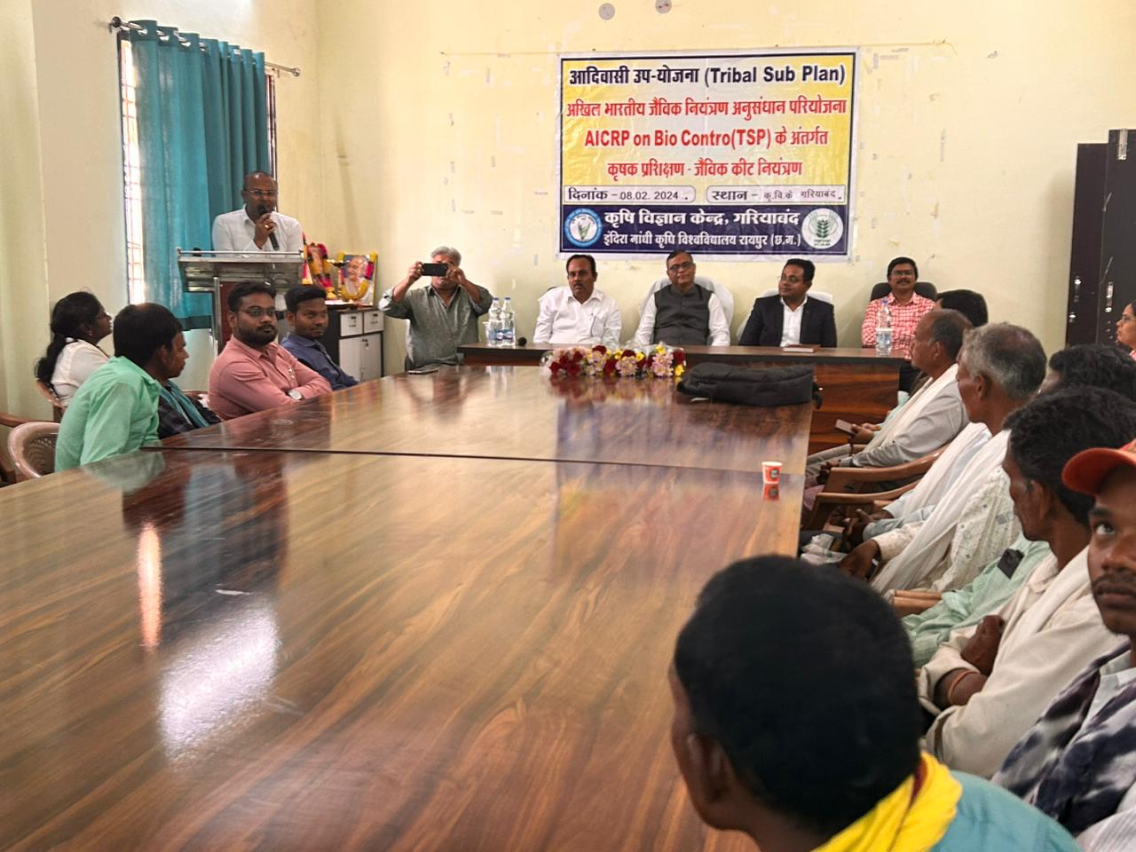गरियाबंद (ट्रैक सिटी) / कृषि विज्ञान केन्द्र में गत दिवस आदिवासी उपयोजना अन्तर्गत जैविक कीट नियंत्रण परियोजना के तहत् एक दिवसीय कृषक प्रशिक्षण सह कार्यशाला का आयोजन किया गया। कार्यक्रम में उपस्थित कृषकों को इंदिरा गांधी कृषि विश्वविद्यालय से आये कीट विज्ञान विभाग के विभागाध्यक्ष डॉ. वाई. के यदु ने जैविक कीट नियंत्रण के फायदों के बारे में विस्तार से जानकारी दी। कृषि विज्ञान केन्द्र, वरिष्ठ वैज्ञानिक एवं प्रमुख डॉ. मनीष चौरसिया ने द्वारा जैविक नियंत्रण से संबंधित विस्तृत जानकारी दी एवं डॉ. वाई के. मेश्राम (सहायक प्राध्यापक) एवं डॉ. रश्मि गौराहा (कार्यक्रम सहायक) ने ट्राईकोकार्ड एवं ब्रैकोकार्ड को खेत में लगाने की विधि तथा जैविक कीट नियंत्रण के विषय में जानकारी देते हुए, ट्राईकोग्रामा अंडा परजीवी का धान के तना छेदक में नियंत्रण ब्रकौन का विभिन्न इल्लीयों के नियंत्रण और फेरोमोन ट्रैप का उपयोग करने के लिए किसानों को जागरूक किया। कृषि विभाग के उपसंचालक  चंदन रॉय द्वारा जिले के कृषकों को शासन से जुड़ी योजनाओं की जानकारी दी एवं जैविक कीट नियंत्रण प्रणाली से अधिक से अधिक कृषि करने के लिए प्रेरित किया।