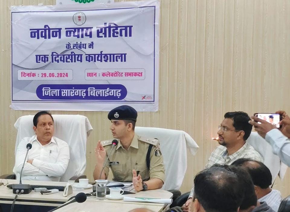 कलेक्टर धर्मेश साहू ने कहा कि नवीन न्याय संहिता में दंड नहीं बल्कि न्याय दिलाने की बात कही गई है। वर्तमान परिदृश्य में जो धाराएं अनुपयोगी हो गई हैं, उसे विलोपित किया गया है और आवश्यकता अनुसार संशोधित कर नए प्रावधानों को जोड़ा गया है। सूचना प्रौद्योगिकी के इस युग में डिजिटल साक्ष्य को भी मान्यता दी गई है। पुलिस अधीक्षक पुष्कर पुष्कर शर्मा ने कहा कि – समय की जरूरत के अनुसार आज भारतीय दंड संहिता में संशोधन करते हुए नवीन न्याय संहिता लागू की जा रही है, जिसमें साक्ष्य महिला सुरक्षा को लेकर के जरूरी बदलाव किए गए हैं। इसके लागू होने से नागरिकों को बेहतर न्याय मिलेगा। नवीन न्याय संहिता के लागू होने से न्याय व्यवस्था को नहीं दिशा मिलेगी। भारतीय दंड संहिता 1860 के स्थान पर भारतीय न्याय संहिता 2023 को लागू होने वाला है। कार्यक्रम में परियोजना निदेशक पंचायत हरिशंकर चौहान, एसडीएम अनिकेत साहू , स्निग्धा तिवारी, पुलिस विभाग के एएसपी कमलेश्वर चंदेल, थाना प्रभारी कोतवाली सारंगढ़ कामिल हक, सरसीवा थाना प्रभारी टीकाराम खटकर सहित अन्य थाना प्रभारी अधिकारी उपस्थित थे। कार्यक्रम का आभार प्रदर्शन एसडीएम अनिकेत साहू ने किया। कार्यक्रम का मंच संचालन एडिशनल पुलिस अधीक्षक कमलेशवर चंदेल के द्वारा किया गया। इस कार्यशाला में पत्रकारगण भरत अग्रवाल, संजय मानिकपुरी, दीपक थवाईत, गोविंद बरेठा, प्रशांत प्रधान, धीरज बरेठ और राजू कीर्ति चौहान उपस्थित थे।