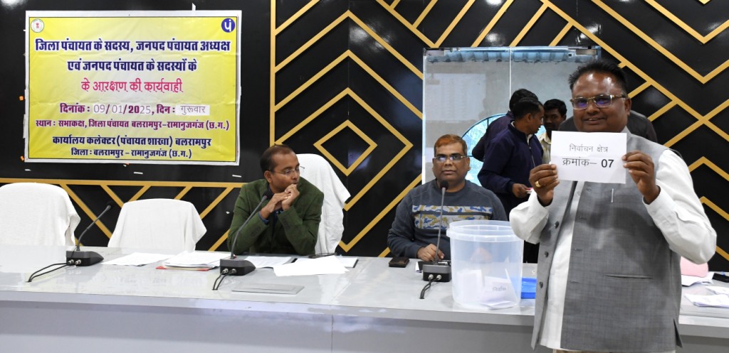 बलरामपुर (ट्रैक सिटी)/ त्रिस्तरीय पंचायतों के आम निर्वाचन 2025 हेतु जिला पंचायत सदस्य, जनपद पंचायत अध्यक्ष एवं सदस्य के लिए आरक्षण की कार्यवाही जिा पंचायत के सभाकक्ष में जनप्रतिनिधियों तथा अधिकारी-कर्मचारियों की उपस्थिति में लाटरी पद्धति से किया गया।