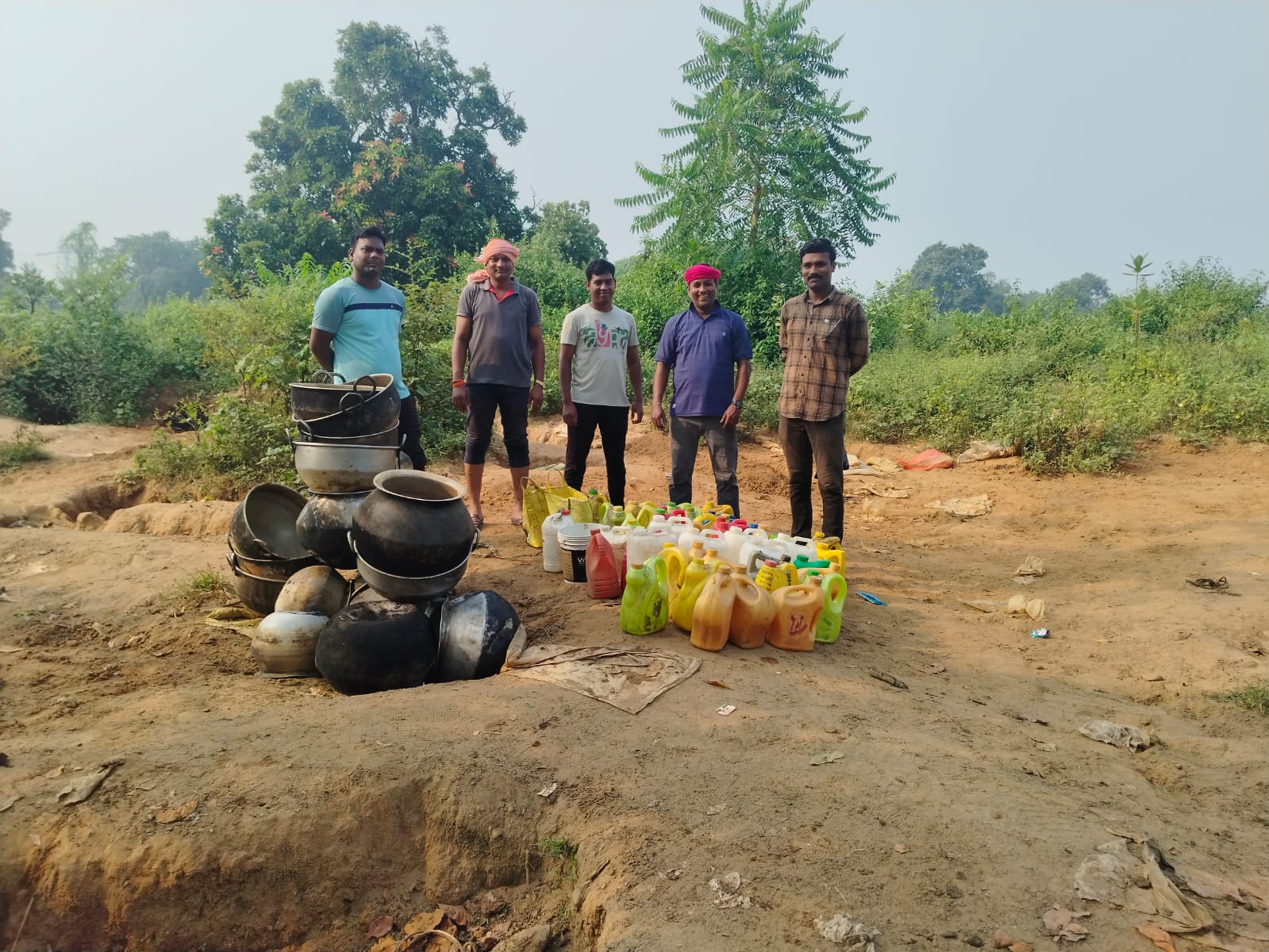 04. नग सफेद रंग के 05 लीटर क्षमता वाली प्लास्टिक जरीकेन में भरा 20 लीटर हाथ भट्टी का कच्ची महुआ शराब