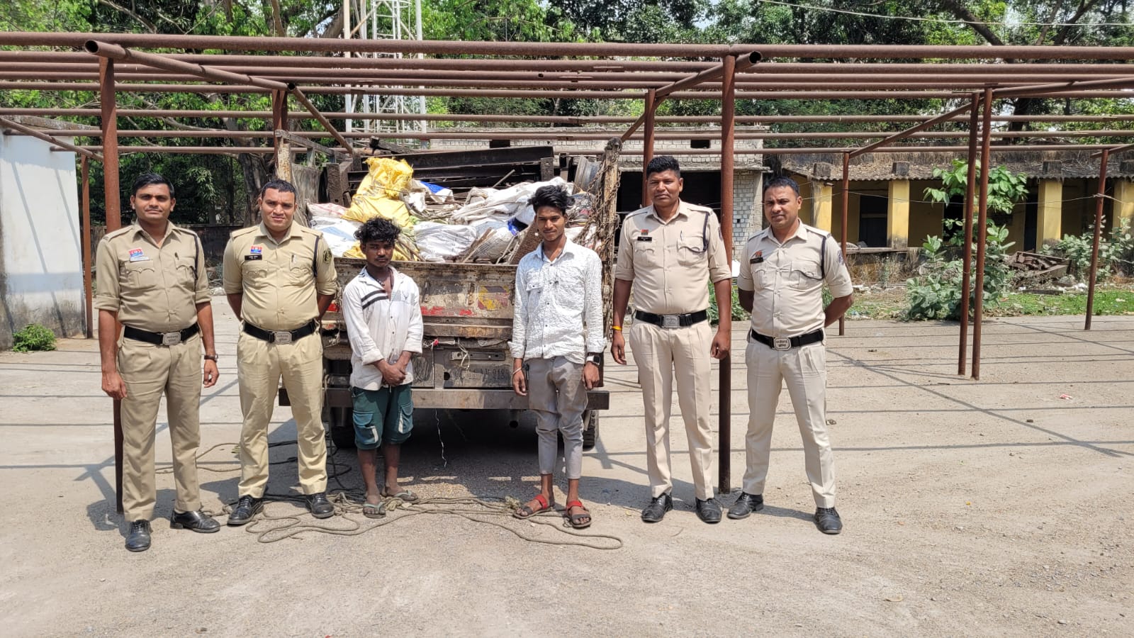 कोरबा (ट्रैक सिटी)/ *प्रकरण – 1 (थाना दर्री):* दिनांक 13.04.2025 को दर्री थाना पुलिस द्वारा क्षेत्र में पेट्रोलिंग के दौरान एक सफेद रंग की टाटा पिकअप वाहन क्रमांक CG-11-BE-2185 को संदेह के आधार पर रोका गया। वाहन में विक्रम टंडन, पिता – देवप्रकाश टंडन, उम्र – 20 वर्ष, निवासी – नीलगिरी बस्ती, थाना दर्री, अवैध रूप से कबाड़ सामग्री (एंगल, रॉड, छड़, लोहे का स्क्रैप) कुल लगभग 2.5 टन का परिवहन करता पाया गया।