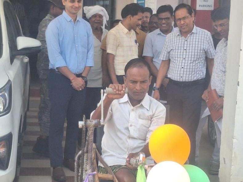 Track city. जिले के सारंगढ़ विकासखंड के ग्राम मुड़पार बड़े पोस्ट चांटीपाली के दिव्यांग भभीखन साहू को कलेक्टोरेट सारंगढ़ के मुख्य द्वार में कलेक्टर धर्मेश कुमार के मुख्य आतिथ्य में पुलिस अधीक्षक पुष्कर शर्मा ने समाज कल्याण विभाग के माध्यम से ट्रायसायकल प्रदान किया। यह ऐसी घटना है जिसमें ट्रायसायकल मिलने से दिव्यांग भभीखन से कई गुना खुशी कलेक्टर श्री धर्मेश साहू के चेहरे में अथाह खुशी की मुस्कुराहट और पुलिस अधीक्षक पुष्कर शर्मा के चेहरे में मुस्कुराहट दिखाई दिए। यह आत्मिक शांति और एक भला कार्य समाज कल्याण विभाग के नाम को वास्तविक पहचान दिलाता है। ये भी गौर करने वाली बात है कि कलेक्टर श्री साहू के नाम अनुरूप धर्म के देव (धर्मेश) हैं। अब दिव्यांग श्री साहू को जब तक ट्रायसायकल साथ दें तब तक उनके दैनिक जीवन के कार्यों में सहूलियत मिलेगा।