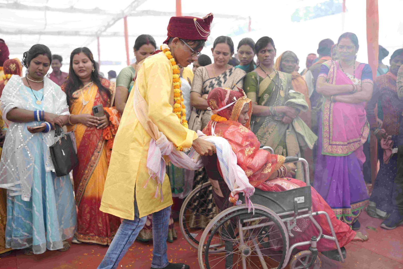 कोरबा के बालको की रहने वाली प्रतिभा बचपन से ही दिव्यांग है। दोनों पैर से लाचार प्रतिभा को लगता था कि पता नहीं उसके साथ कोई शादी करेगा भी या नहीं! शादी की यह ख्वाहिश एक दिन हकीकत में बदल गई जब चाम्पा निवासी अश्विनी साहू ने प्रतिभा का हाथ जीवन भर थामने का निर्णय लिया। दोनों के घर वालों की सहमति बनी और आर्थिक स्थिति ठीक नहीं होने पर दोनों का विवाह मुख्यमंत्री कन्या विवाह योजना अंतर्गत आज सीएसईबी पूर्व खेल मैदान में आयोजित सामूहिक विवाह समारोह में सम्पन्न हुआ। व्हीलचेयर के सहारे प्रतिभा ने सात फेरे लिए और पति अश्विनी ने उनके माथे पर सिंदूर भरा। दोनों परिवार की सहमति और दूल्हे के रजामंदी के साथ विवाह हुआ। इस दौरान महिला एवं बाल विकास विभाग के अधिकारियों ने विवाह की सम्पूर्ण औपचारिकता निभाई। परिजनों ने मुख्यमंत्री कन्या विवाह योजना से मिले सहयोग की प्रशंसा की और इसे गरीब परिवारों के लिए वरदान बताते हुए कहा कि सामूहिक विवाह का आयोजन होते रहना चाहिए ताकि गरीब परिवारो को आर्थिक बोझ न सहना पड़े। मुख्यमंत्री विष्णुदेव साय ने भी आज 102 जोड़ो को आशीर्वाद प्रदान कर नव दाम्पत्य जीवन में प्रवेश पर बधाई दी।