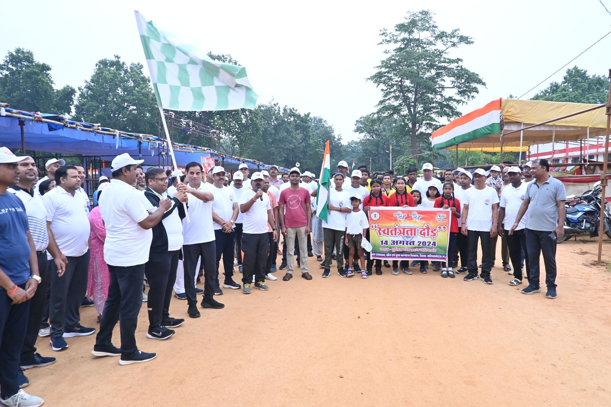 गरियाबंद/ कलेक्टर दीपक कुमार अग्रवाल के निर्देशानुसार आजादी के 77वीं वर्षगांठ के अवसर पर प्रतिवर्ष की तरह इस बार भी गरियाबंद जिले में आज स्वतंत्रता दौड़ का आयोजन किया गया। देश की एकता, अखंडता और स्वतंत्रता को अक्षुण रखने का संदेश लेकर आज सुबह पुलिस परेड ग्राउंड गरियाबंद से कलेक्टर दीपक अग्रवाल और वरिष्ठ पुलिस कप्तान अमित तुकाराम कांबले के साथ पूरा गरियाबंद शहर स्वतंत्रता दौड़ में शामिल हुआ। स्वतंत्रता का संदेश लेकर जिले के स्कूली बच्चे, युवा और गणमान्य नागरिकों ने जोश और जुनून के साथ रिमझिम बारिश में दौड़ लगाई। स्वतंत्रता दिवस के एक दिन पहले जिला प्रशासन तथा खेल एवं युवा कल्याण विभाग द्वारा आयोजित इस दौड़ में खेल संघों के पदाधिकारी, खिलाड़ियों, एनसीसी कैडेट्स, एनएसएस के छात्र छात्राओं, स्काउट गाइड के सदस्य, पुलिस के जवान सहित अधिकारी-कर्मचारियों ने भी शिरकत की। स्वतंत्रता दौड़ सुबह सात बजे गरियाबंद के पुलिस लाईन से प्रारंभ हुई जो जिला कार्यालय परिसर रोड (देवभोग रोड) तरफ होते हुए आगे जाकर वापस पुलिस परेड ग्राउंड में समाप्त हुई। इस दौरान अपर कलेक्टर अरविन्द पाण्डेय, अतिरिक्त पुलिस अधीक्षक जितेन्द्र चंद्राकर, संयुक्त कलेक्टर नवीन भगत, राकेश गोलछा, एसडीएम विशाल महाराणा, जिला शिक्षा अधिकारी एके सारस्वत, सहित जिला स्तरीय अधिकारी-कर्मचारी, स्कूली बच्चे, गणमान्य नागरिक स्वतंत्रता दौड़ में शामिल हुए।