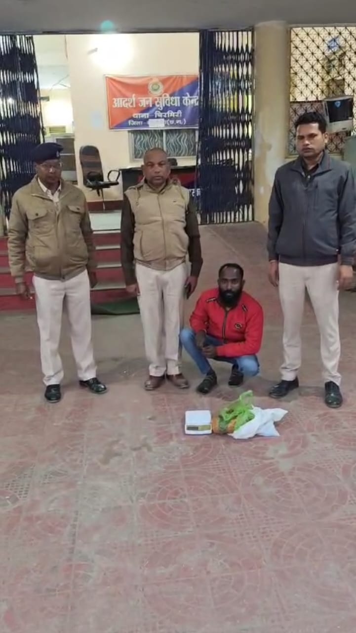एमसीबी (ट्रैक सिटी)/ पुलिस अधीक्षक चन्द्रमोहन सिंह, जिला मनेन्द्रगढ़-चिरमिरी-भरतपुर, के द्वारा क्षेत्र में संचालित अवैध कारोबार एवं अवैध धंधे में संलिप्त व्यक्तियों के विरुद्ध सख्त कार्यवाही कर अंकुश लगाए जाने के निर्देश दिए गए हैं। इन निर्देशों के पालन में मुखबिर सक्रिय कर आसूचना तंत्र के माध्यम से अवैध मादक पदार्थों के परिवहन एवं विक्रय की सूचना प्राप्त होने पर अतिरिक्त पुलिस अधीक्षक अशोक वाडेगांवकर एवं नगर पुलिस अधीक्षक चिरमिरी दीपिका मिंज के मार्गदर्शन में कार्रवाई की गई। 24 नवम्बर 2024 को मुखबिर से सूचना प्राप्त हुई कि कपुरसिंह दफाई निवासी मुन्ना राव अपने पास अवैध मादक पदार्थ गांजा रखकर टंकी दफाई छोटी बाजार की ओर जा रहा है। सूचना के आधार पर पुलिस टीम ने टंकी दफाई हनुमान मंदिर के पास छोटी बाजार में रेड कार्रवाई की। मौके पर संदेही को रोककर नाम-पता पूछने पर उसने अपना नाम मुन्ना राव पिता राजू राव, उम्र 32 वर्ष, निवासी कपूर सिंह दफाई छोटी बाजार थाना चिरमिरी जिला एमसीबी बताया । आरोपी को मुखबिर सूचना से अवगत कराकर तलाशी ली गई, जिसमें एक प्लास्टिक पन्नी में भरा हुआ मादक पदार्थ गांजा बरामद हुआ। तौल करने पर गांजे का वजन 01 किलो 100 ग्राम पाया गया, जिसकी अनुमानित कीमत 22,000 रुपये है। गवाहों के समक्ष बरामद गांजा को जब्त कर लिया गया। आरोपी के विरुद्ध थाना चिरमिरी में अपराध क्रमांक 290/24 धारा 20 (बी) एनडीपीएस एक्ट के तहत प्रकरण दर्ज कर 24 नवम्बर 2024 को गिरफ्तार किया गया। इसके बाद आरोपी को जिला उप जेल मनेन्द्रगढ़ भेज दिया गया।