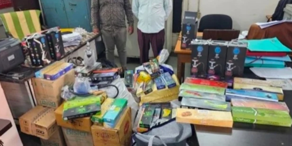 बता दें कि आज दोपहर एण्टी क्राईम एण्ड साईबर यूनिट तथा थाना गोलबाजार पुलिस की संयुक्त टीम ने मुखबिर की सूचना पर जयस्तंभ चैक के पास मयूरा होटल के बाजू स्थित राज पान पैलेस में दबिश देकर प्रतिबंधित हुक्का से संबंधित सामग्रियां को जब्त किया है। मामले में पुलिस ने पानठेला संचालक अशोक कुमार मंधानी 58 वर्ष तथा अनुराग मंधानी 32 वर्ष को गिरफ्तार किया है। दोनों आरोपी राजीव नगर खम्हारडीह के रहने वाले है।