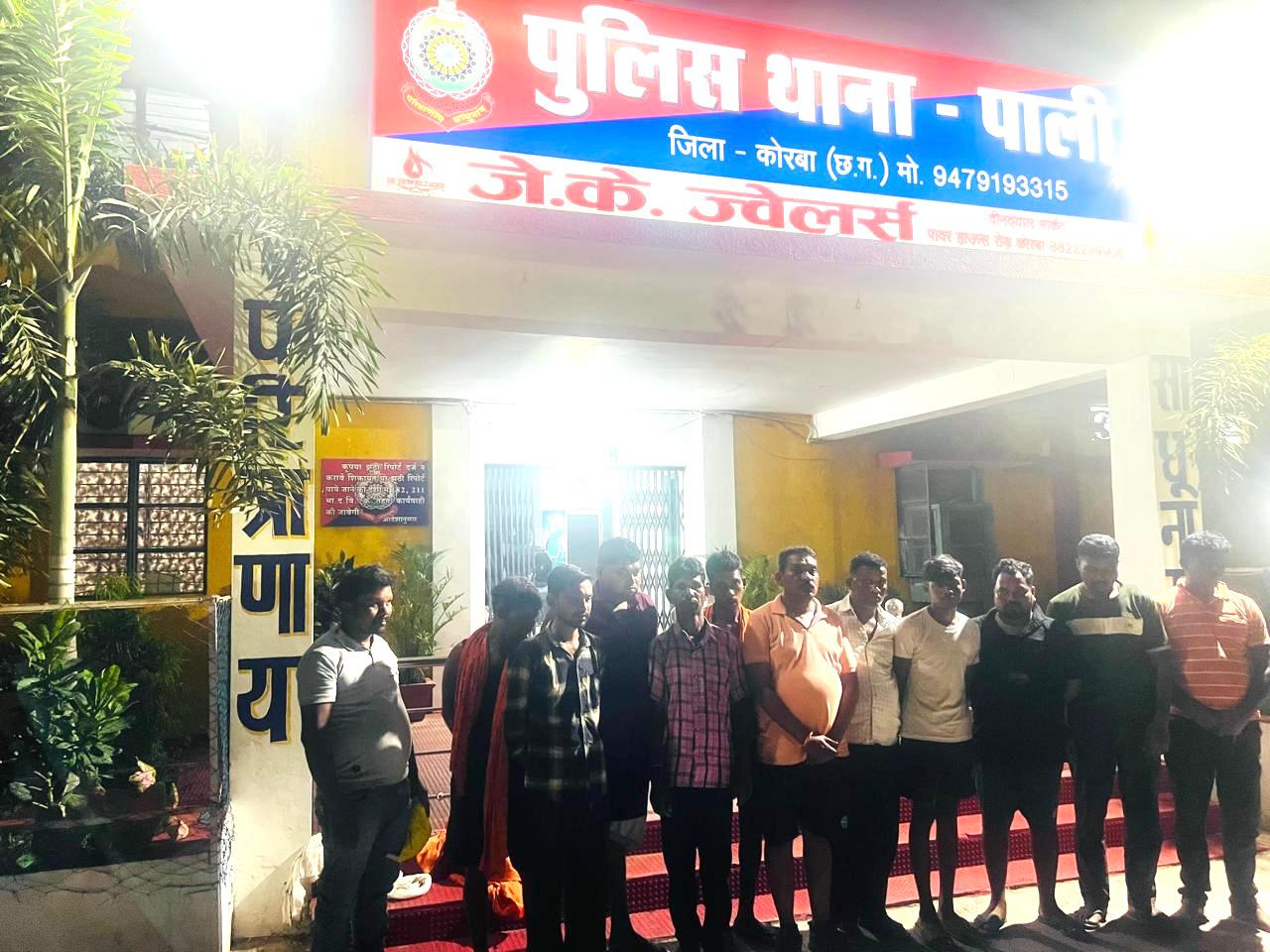 पाली पुलिस को मुखबीर से सूचना मिला कि सलिहाभाठा कलारीनार जंगल में रात के अंधेरे में मोमबत्ती जलाकर रूपये पैसे का दांव लगाकर हार जीत का जुआ खेल रहे है, कि सूचना पर थाना प्रभारी पाली चमन लाल सिन्हा के द्वारा तत्काल एक विशेष टीम गठित कर स्वयं टीम के साथ सलिहाभाठा जंगल पहुंचकर घेराबंदी कर मुखबीर द्वारा बताये स्थान पर रेड कार्यवाही किया गया जो कुछ जुआडियान रात के अंधेरे व पुलिस को देख भाग गये। पकडे गये जुआडियान के कब्जे से जुमला नगदी रकम 7310 रूपये, 52 पत्ती ताश, प्लास्टिक झिल्ली दो अधजली मोमबत्ती मिला, जिसे जप्त कर कब्जा पुलिस लिया गया। आरोपियों का कृत्य धारा छ.ग. जुआ प्रतिषेध अधिनियम 2022 की धारा 03 का अपराध पाये जाने से विधिवत कार्यवाही की गई।
