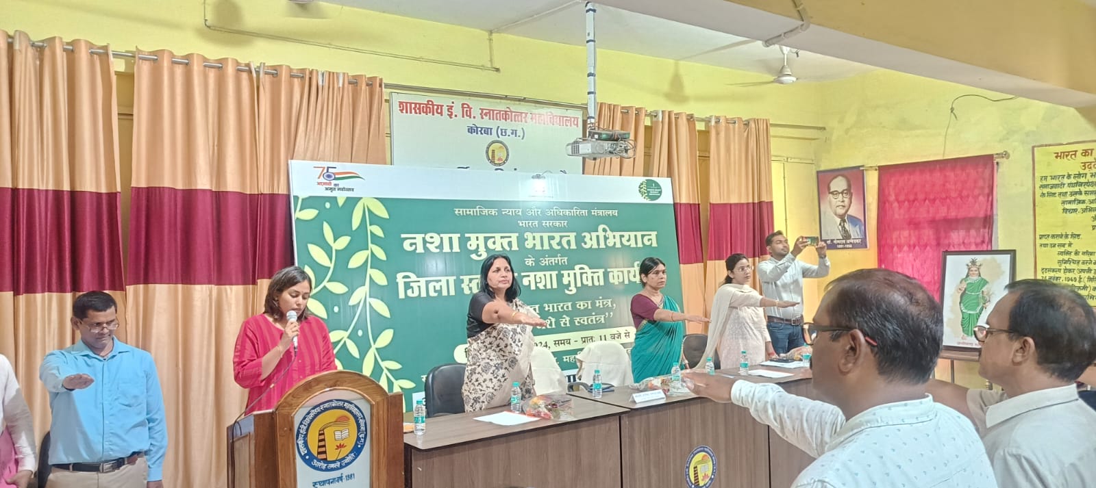 कोरबा (ट्रैक सिटी)/ नशा मुक्त भारत अभियान के अवसर पर आयुक्त नगर पालिक निगम सुश्री प्रतिष्ठा ममगाई की अध्यक्षता में शासकीय ई. वी. स्नातकोत्तर महाविद्यालय कोरबा में “विकसित भारत का मंत्र, भारत हो नशे से स्वतंत्र थीम पर जिला स्तरीय नशा मुक्ति कार्यक्रम का आयोजन किया गया। उन्होंने नशामुक्त भारत अभियान अंतर्गत नशे से दूर रहने एवं विकसित भारत का मंत्र, भारत हो नशे से स्वतंत्र का शपथ दिलाया। युवाओं को नशे दूर रहने, नशे के विरुद्ध जागरूक रहने, नशे की लत से समाज में होने वाले आकस्मिक दुर्घटनाओं के प्रति जागरूकता लाने कहा।