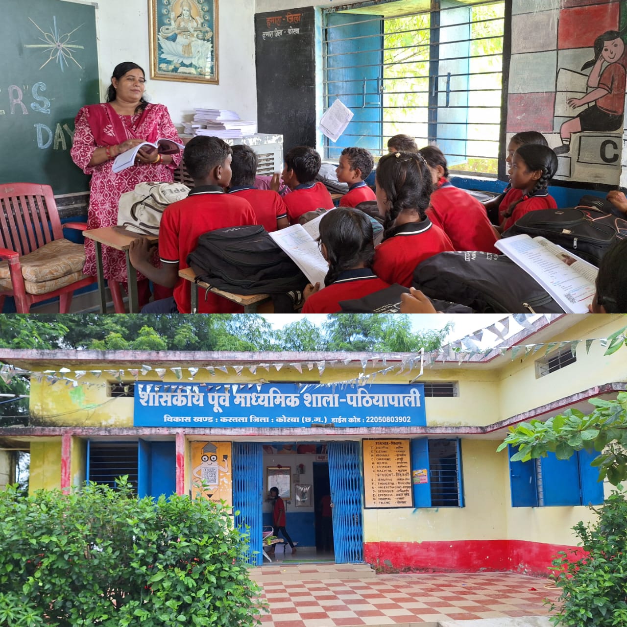 कोरबा (ट्रैक सिटी)/ कोरबा जिले के करतला विकासखंड के छोटे से ग्राम पठियापाली में बनी पूर्व माध्यमिक शाला क्षेत्र के बच्चों के लिए शिक्षा का एक महत्वपूर्ण केंद्र है। इस स्कूल में आसपास के गाँवों- मौहार, धमनागुड़ी और ठरकपुर के बच्चे अपनी सपनों की नींव रखने आते हैं। पहले इस स्कूल में केवल तीन शिक्षक थे, जो 107 विद्यार्थियों की शैक्षिक जरूरतों को पूरा करने के लिए दिन-रात मेहनत करते थे। लेकिन, शिक्षकों की कमी के कारण कई बार बच्चों को वह ध्यान और गुणवत्तापूर्ण शिक्षा नहीं मिल पाती थी, जिसके वे हकदार थे।