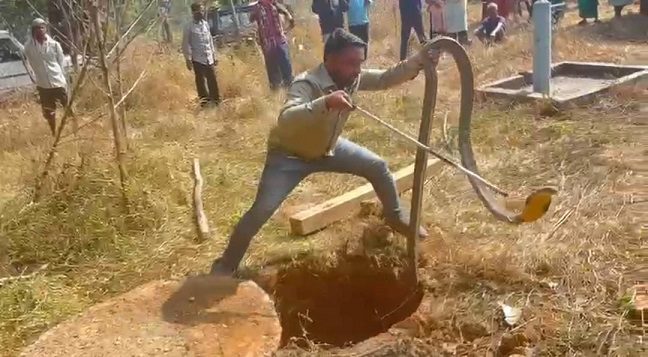 कोरबा (ट्रैक सिटी)/ कोरबा जिला अपनी समृद्ध जैव-विविधता और दुर्लभ वन्यजीवों के लिए जाना जाता है। यहां कई बार ऐसे जीव देखने को मिलते हैं जिनसे आम लोग चकित रह जाते हैं। इसी कड़ी में जिले के बालकों क्षेत्र के तिलईदाड़ गांव में 12 फिट का विशाल काय किंग कोबरा बंद पड़े सेफ्टिक टैंक में गिरा हुआ था, जिस पर घर वालों की नजर पड़ी,जिसको देख लोगो के होस उड़ गए,अचानक इतने बड़े विषधर सांप को देखकर ग्रामीणों में दहशत फैल गई और लोगों की भीड़ इकट्ठा हो गई।