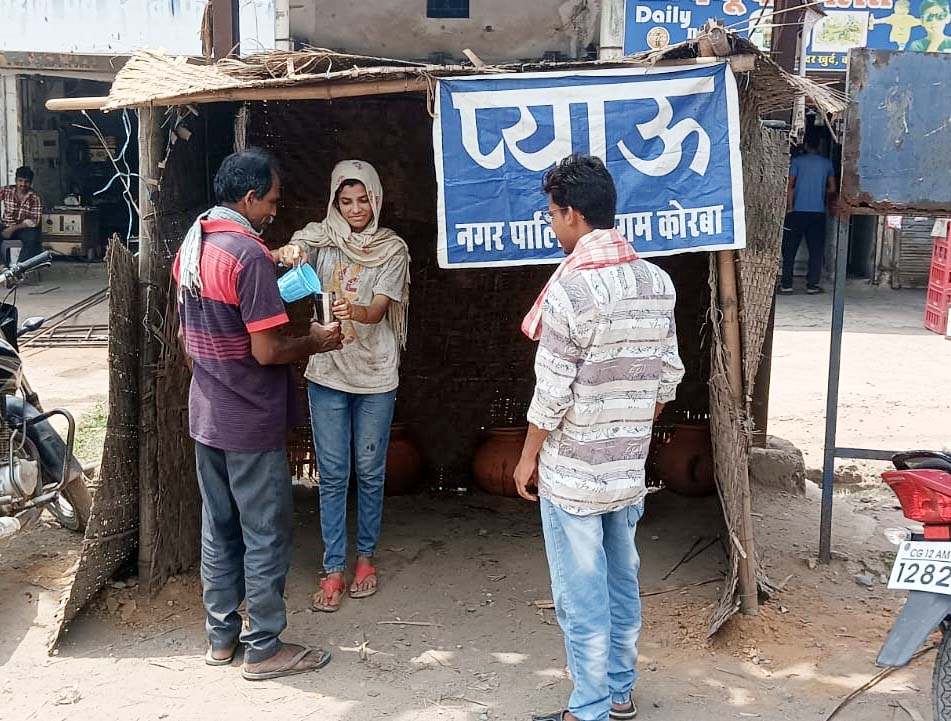 Track city.  बढ़ती गर्मी में राहगीरों, जरूरतमंदों को शुद्ध एवं ठंडा पेयजल उपलब्ध कराने हेतु नगर पालिक निगम कोरबा द्वारा अपने सभी जोन के प्रमुख चौक-चौराहों पर अस्थाई प्याऊ स्थापित किए गए हैं, जहॉं पर आमजन को घडे़ का ठंडा एवं शुद्ध पानी उपलब्ध कराया जा  रहा है।
