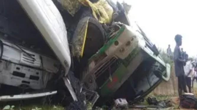 जानकारी के अनुसार, तारा घाटी के पास 35 यात्रियों से भरी बस और ट्रेलर में भिड़ंत हो गई. टक्कर इतनी जोरदार थी कि दोनों वाहन 20 फीट गहरी खाई में जा गिरे. खाई में गिरने के बाद ट्रेलर वाहन बस के ऊपर गिर गया,