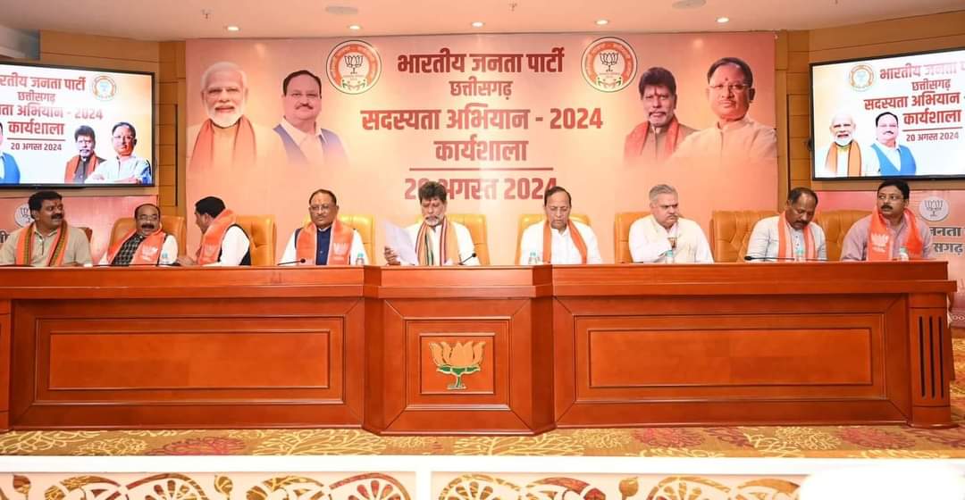रायपुर। भारतीय जनता पार्टी के देशव्यापी सदस्यता अभियान के परिप्रेक्ष्य में मंगलवार को यहां कुशाभाऊ ठाकरे परिसर स्थित भाजपा कार्यालय में प्रदेश स्तरीय बैठक/कार्यशाला आयोजित की गई। बैठक में भाजपा के राष्ट्रीय महामंत्री अरूण सिंह के साथ मुख्यमंत्री विष्णुदेव साय, प्रदेश अध्यक्ष किरण सिंह देव, क्षेत्रीय संगठन महामंत्री अजय जम्वाल, प्रदेश संगठन महामंत्री पवन साय और सदस्यता अभियान के प्रदेश प्रभारी अनुराग सिंहदेव ने उपस्थित पदाधिकारियों व जनप्रतिनिधियों का मार्गदर्शन किया।