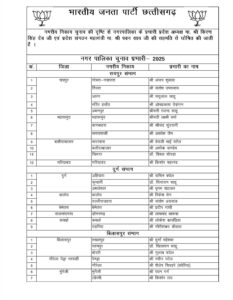 भाजपा ने जारी कि नगर पालिका, नगर पंचायत, संभागीय प्रभारियों की सूची..। देखें किसे मिली कहां की जिम्मेदारी....