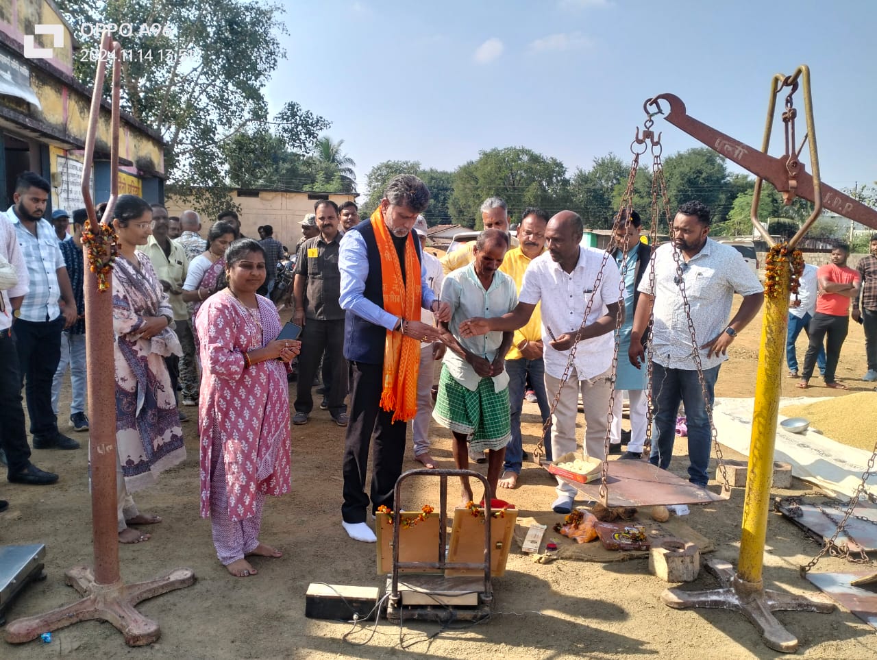 जिले में कुल 79 उपार्जन केंद्रों में पंजीकृत कृषकों से धान खरीदी किया जाना है। इस वर्ष लघु एवं सीमांत कृषकों को दो टोकन और बड़े कृषकों को तीन टोकन का प्रावधान है। टोकन ऑफलाइन एवं ऑनलाइन दोनों माध्यम से किसानों को प्रदान किया जा रहा है। कृषक ऐप टोकन तुँहर हाथ के मध्यम से भी कृषक स्वयं टोकन जारी कर सकते हैं ।सभी उपार्जन केंद्रों में इलेक्ट्रॉनिक कांटा, मॉइस्चर मीटर, बॉयोमेट्रिक डिवाइस उपलब्ध है। सभी केंद्रों में नये और पुराने बारदानों की पूरी व्यवस्था की गई है। कृषकों की सुविधा हेतु सभी उपार्जन केंद्रों में छाया और पेयजल, शौचालय तथा बैठक व्यवस्था सुनिश्चित की गई है। उपार्जन केंद्रों में स्थानीय निगरानी समिति स्थापित है जो कृषकों की समस्या का निराकरण करेगी। गुरुवार को जिले के 42 उपार्जन केंद्रों में विधिवत रूप से 46 कृषकों का सम्मान के साथ धान खरीदी प्रारंभ की गई। उल्लेखनीय है कि इस वर्ष बायोमेट्रिक सत्यापन के द्वारा धान खरीदी किया जाना है,अपरिहार्य स्थिति हेतु ट्रस्टेड पर्सन की नियुक्ति भी की गई है। इस दौरान विधाशरण तिवारी, मनोहर तिवारी, मुरलीधर सेठिया,अजय सेठिया,गौरव जोशी व अधिकारी व कर्मचारी उपस्थित थे।