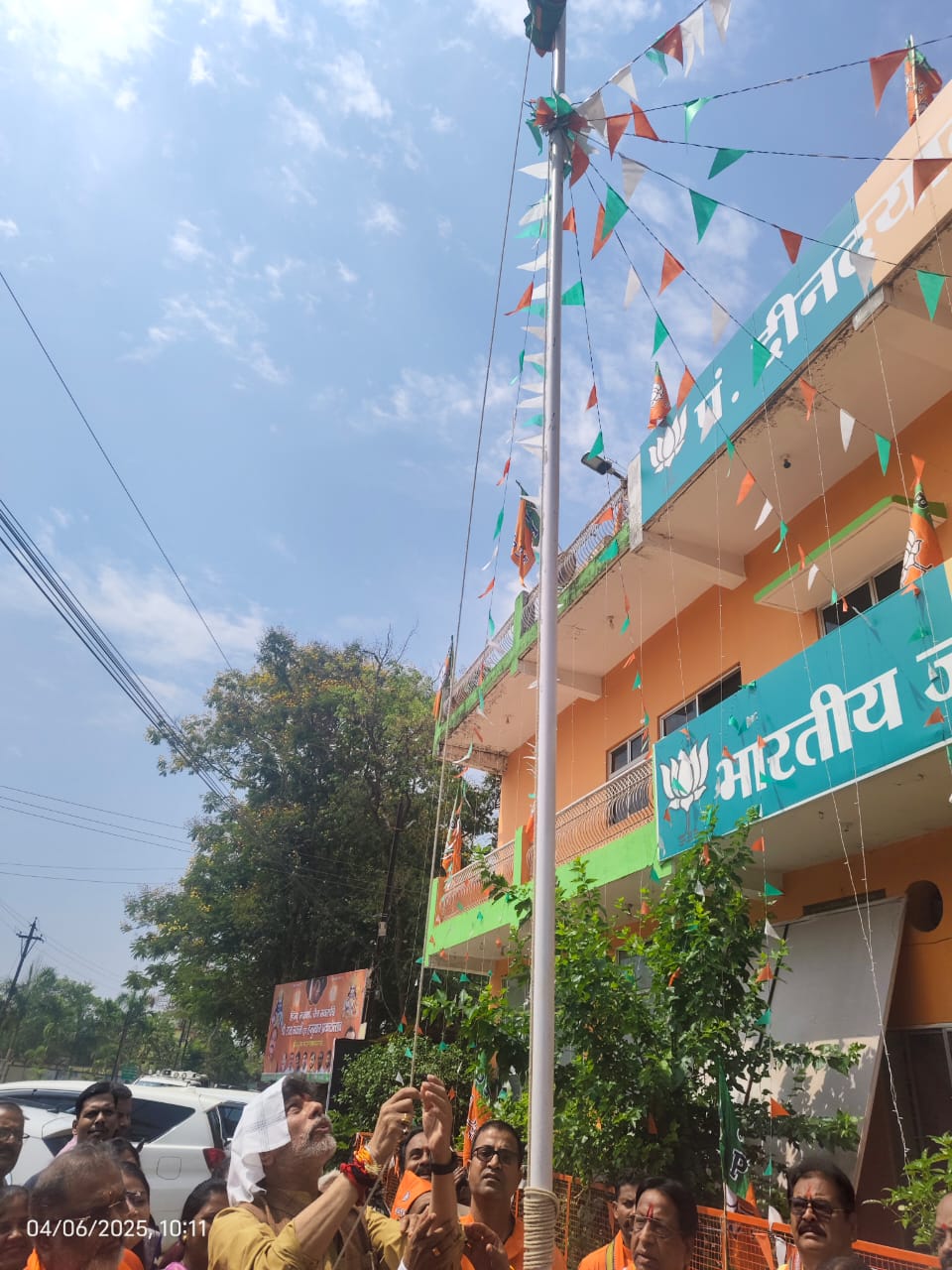 भाजपा प्रदेश अध्यक्ष देव ने जगदलपुर में भाजपा कार्यालय और अपने निवास पर फहराया भाजपा का ध्वज