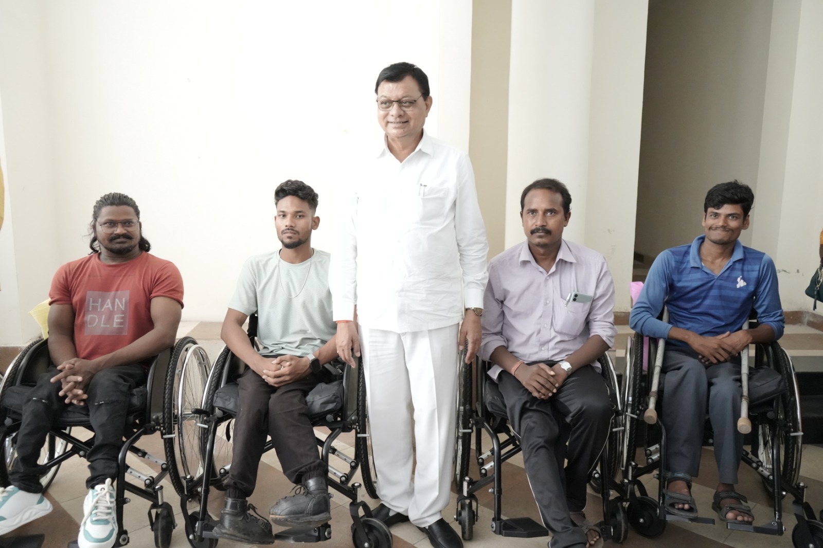 मंत्री लखन लाल देवांगन ने दिव्यांग खिलाड़ियों को व्हील चेयर किया वितरित।