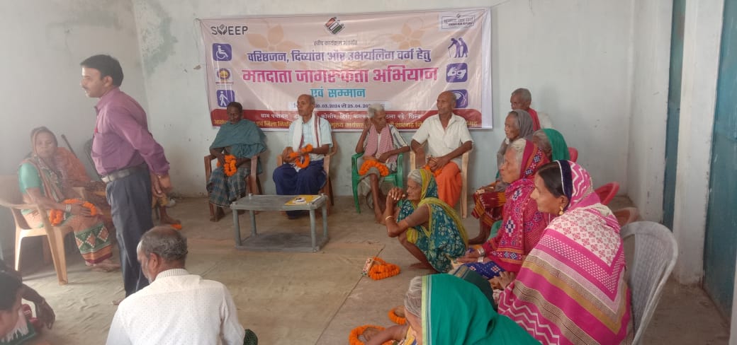 सारंगढ़-बिलाईगढ़, ट्रैक सिटी/ समाज कल्याण विभाग एवं जनपद पंचायत सारंगढ़ के समन्वय से मतदाता जागरूकता अभियान अंतर्गत स्थानीय जनपद पंचायत सारंगढ़ के ग्राम पंचायत ठाकुरदिया के आश्रित ग्राम कोसीर छोटे में आयोजन किया गया। इस अभियान में वरिष्ठ नागरिकों, दिव्यांगजनों के लिए लोकसभा निर्वाचन 2024 में शत प्रतिशत मतदान के लिए उपलब्ध सुविधाओं के संबंध में जागरूक किया गया। कार्यक्रम के अंतर्गत आगामी निर्वाचन के समय शत् प्रतिशत मतदान हेतु प्रेरित करते हुए शपथ संकल्प दिलाया गया। इस अवसर पर 70 से अधिक वरिष्ठ नागरिक, दिव्यांग सहित ग्राम वासी उपस्थित हुए। इस कार्यक्रम में समाज शिक्षा संगठक सुरेश कुमार राठिया, सचिव ग्राम पंचायत गजानन पटेल, समाज कल्याण तकनीकी सहायक आनंद रात्रे सहित अधिकारी कर्मचारी उपस्थित थे।