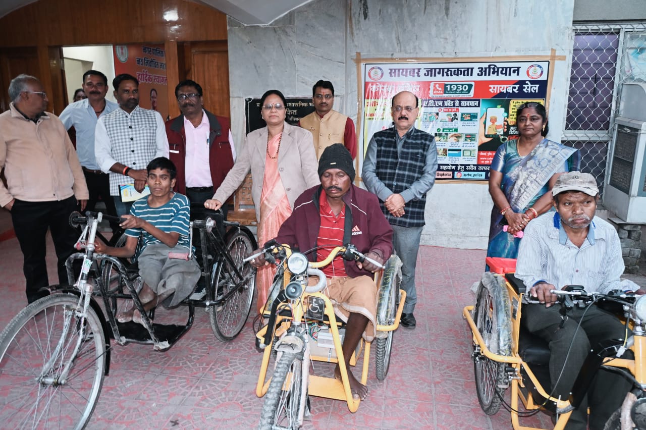 कोरबा (ट्रैक सिटी)/ महापौर संजूदेवी राजपूत ने नगर पालिक निगम क्षेत्रांतर्गत गोपालपुर बस्ती निवासी रतिराम चौहान, रामपुर निवासी यूनोर्स राज व राताखार निवासी दिलीप कुमार को इलेक्ट्रिक ट्रायसिकल प्रदान की, उन्होने उन्हें अपनी शुभकामनाएं देते हुए उनके उज्जवल भविष्य की कामना की। इस मौके पर वरिष्ठ पार्षद अशोक चावलानी, वरिष्ठ नेत्री रूकमणी नायर, उपायुक्त बी.पी.त्रिवेदी, समाज कल्याण विभाग के अधिकारी हरिश सक्सेना, निगम सचिव रामेश्वर सिंह कंवर, मनोज राजपूत आदि उपस्थित थे।