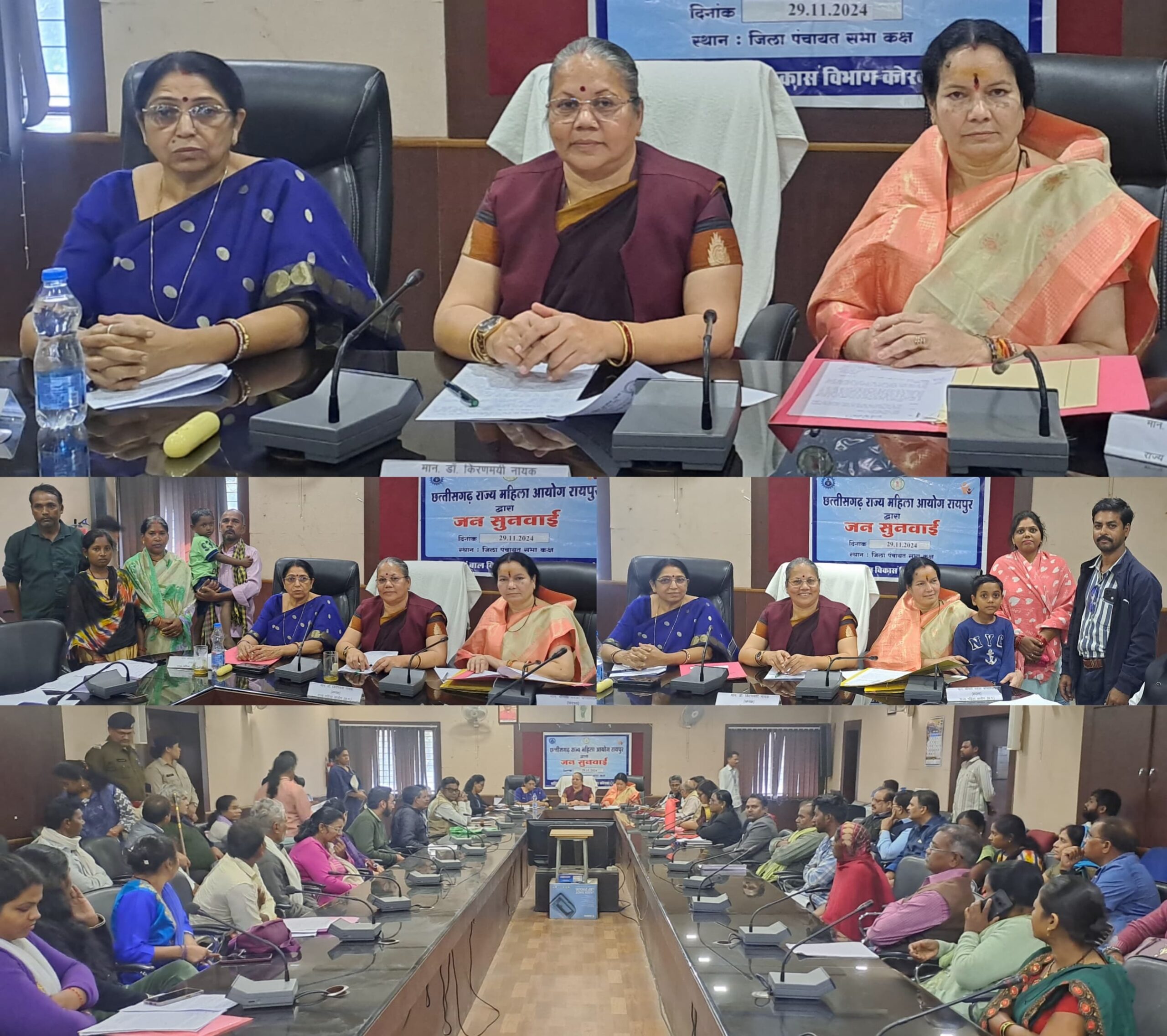 कोरबा (ट्रैक सिटी) छत्तीसगढ़ राज्य महिला आयोग की अध्यक्ष डॉ. किरणमयी नायक एवं सदस्य श्रीमती सरला कोसरिया श्रीमती लक्ष्मी वर्मा ने आज जिला पंचायत सभाकक्ष में महिला उत्पीड़न से सबंधित प्रस्तुत 24 प्रकरणों पर जन सुनवाई की छत्तीसगढ़ महिलाले आयोग की अध्यक्ष डॉ. किरणमयी नायक के अध्यक्षता में आज प्रदेशवाक्षर 291 वीं एवं कोरबा जिलें में 9 वीं सुनवाई हुई।